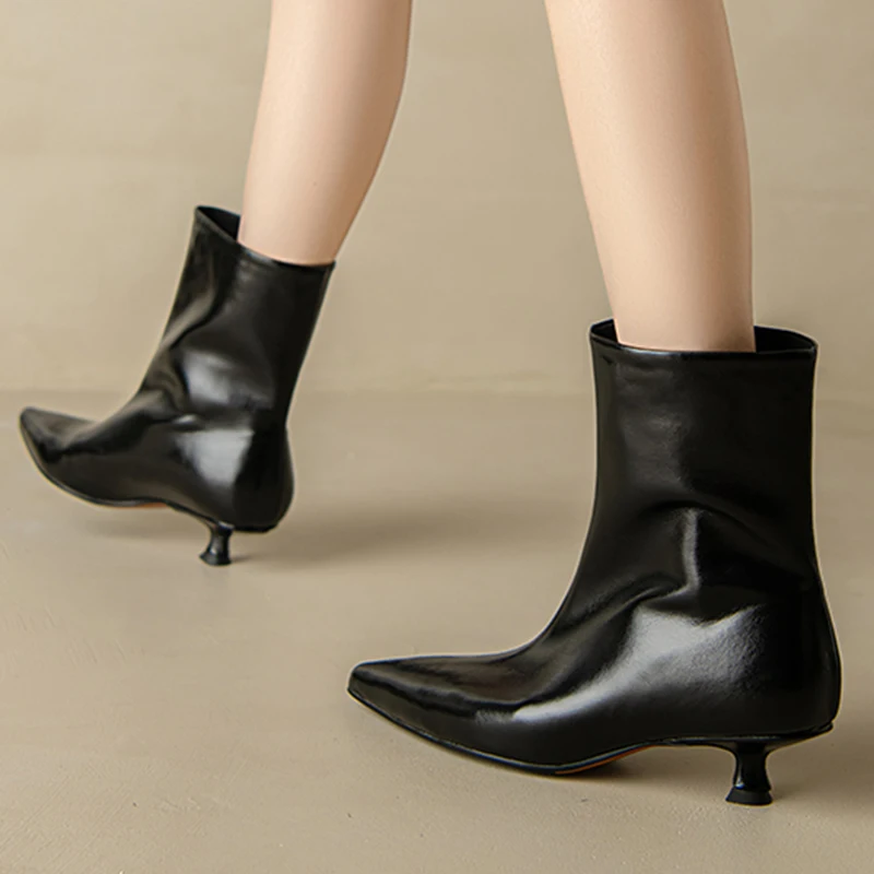 - > Jozhamta tamanho 34-43 mulheres botas de tornozelo de couro real moda sapatos de salto médio para botas de inverno pontiagudas senhora do escritório sapatos de vestido diário
