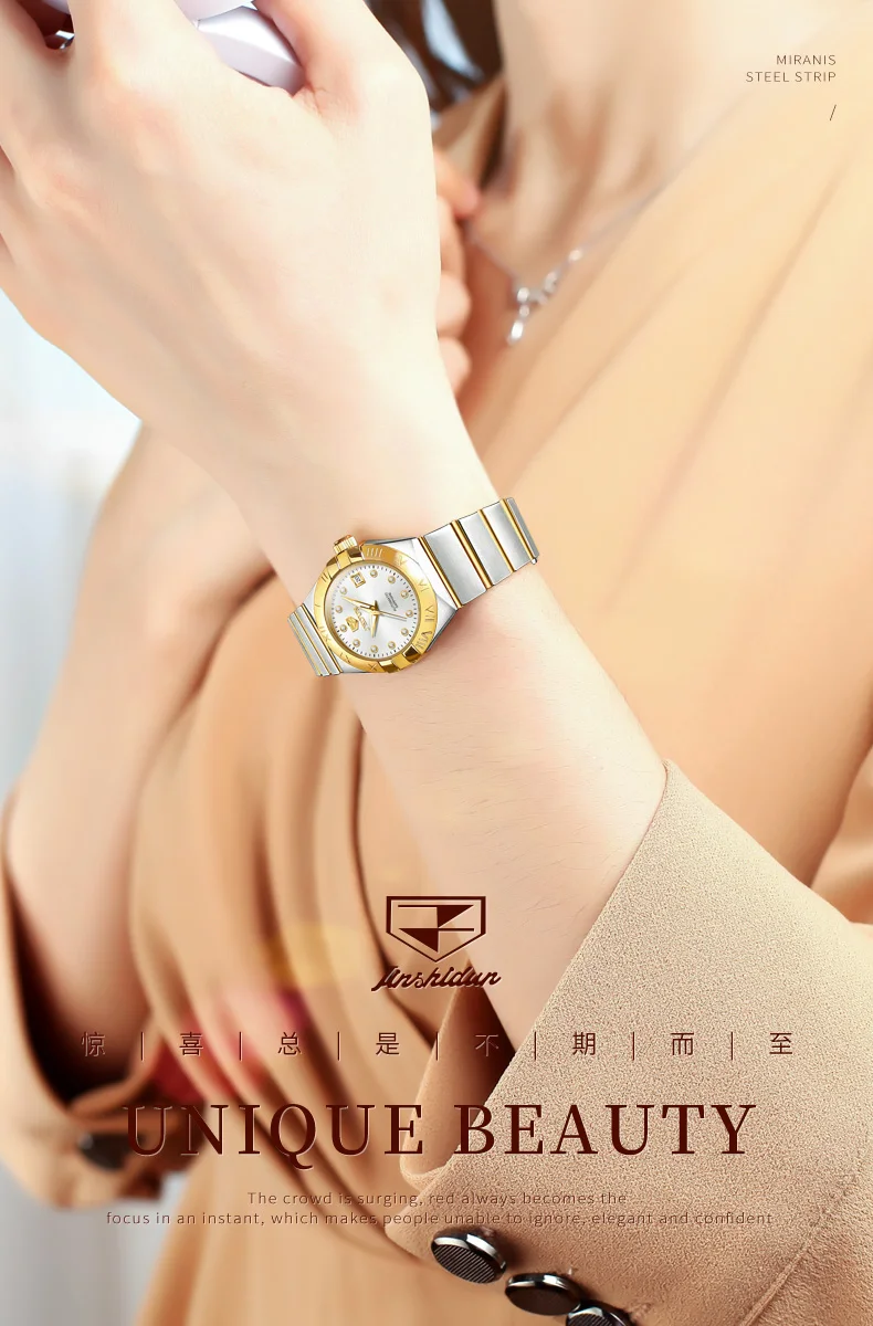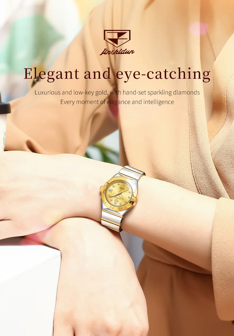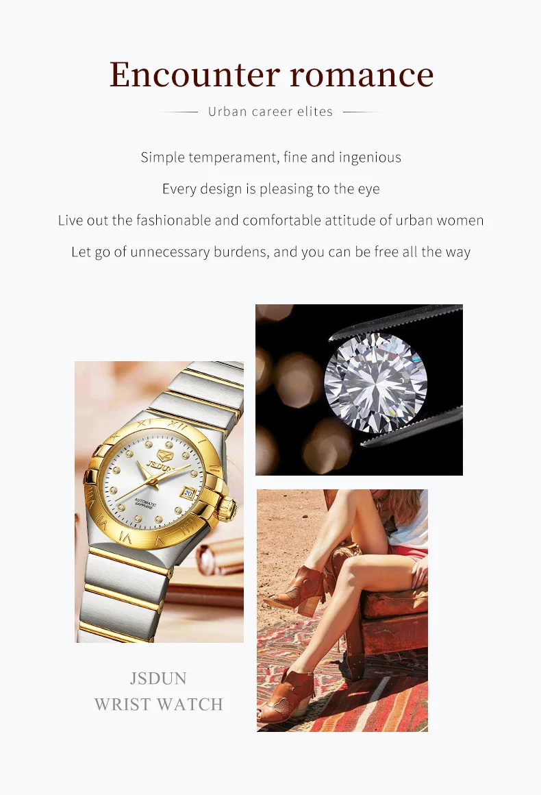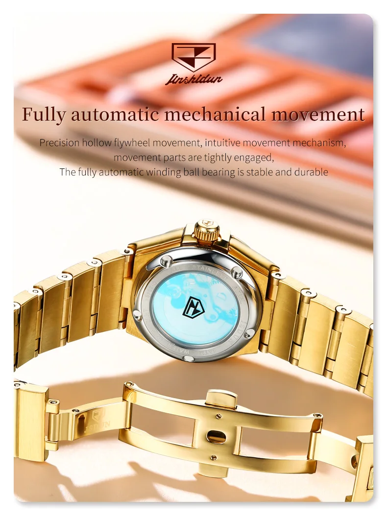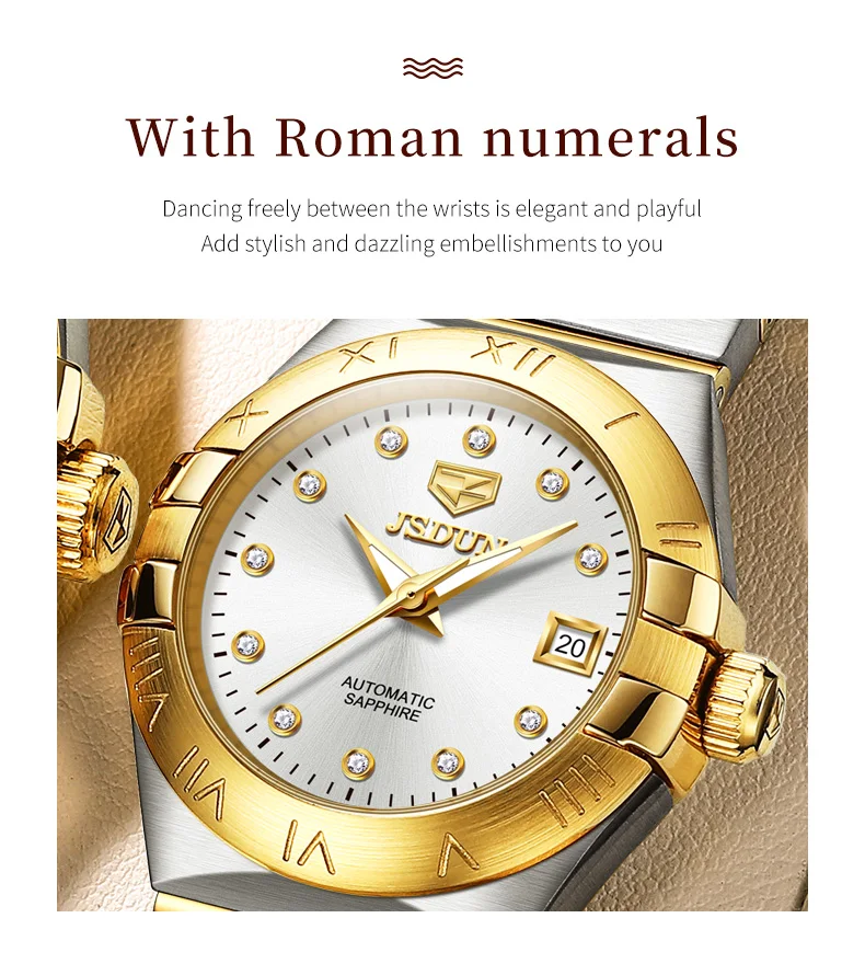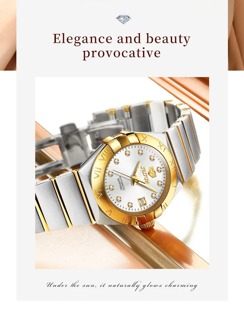 - > JSDUN-Relógios Mecânicos Automáticos Femininos, Relógio de pulso impermeável para senhoras, Espelho Safira, Movimento Importado, Luxo, Original, 5Bar