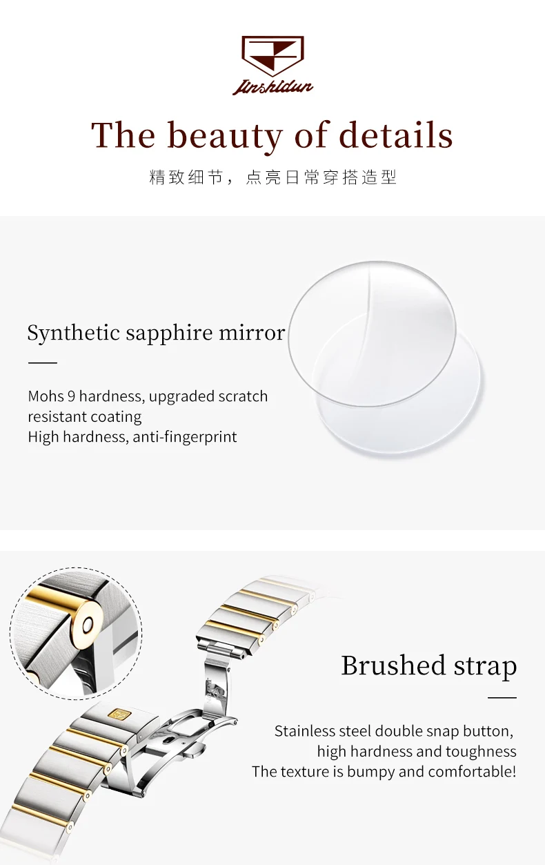 JSDUN Original Mulheres Relógios Mecânica Automáticos Luxo Sapphire Espelho Importado Movimento 5Bar À Prova D 'Água Senhoras Relógio De Pulso
