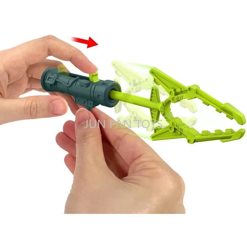 Explore o projétil anexado do lançador com a ativação do botão e deslize a garra de captura para estender para frente e para trás - além disso, aperte a garra de captura para abrir e fechar!