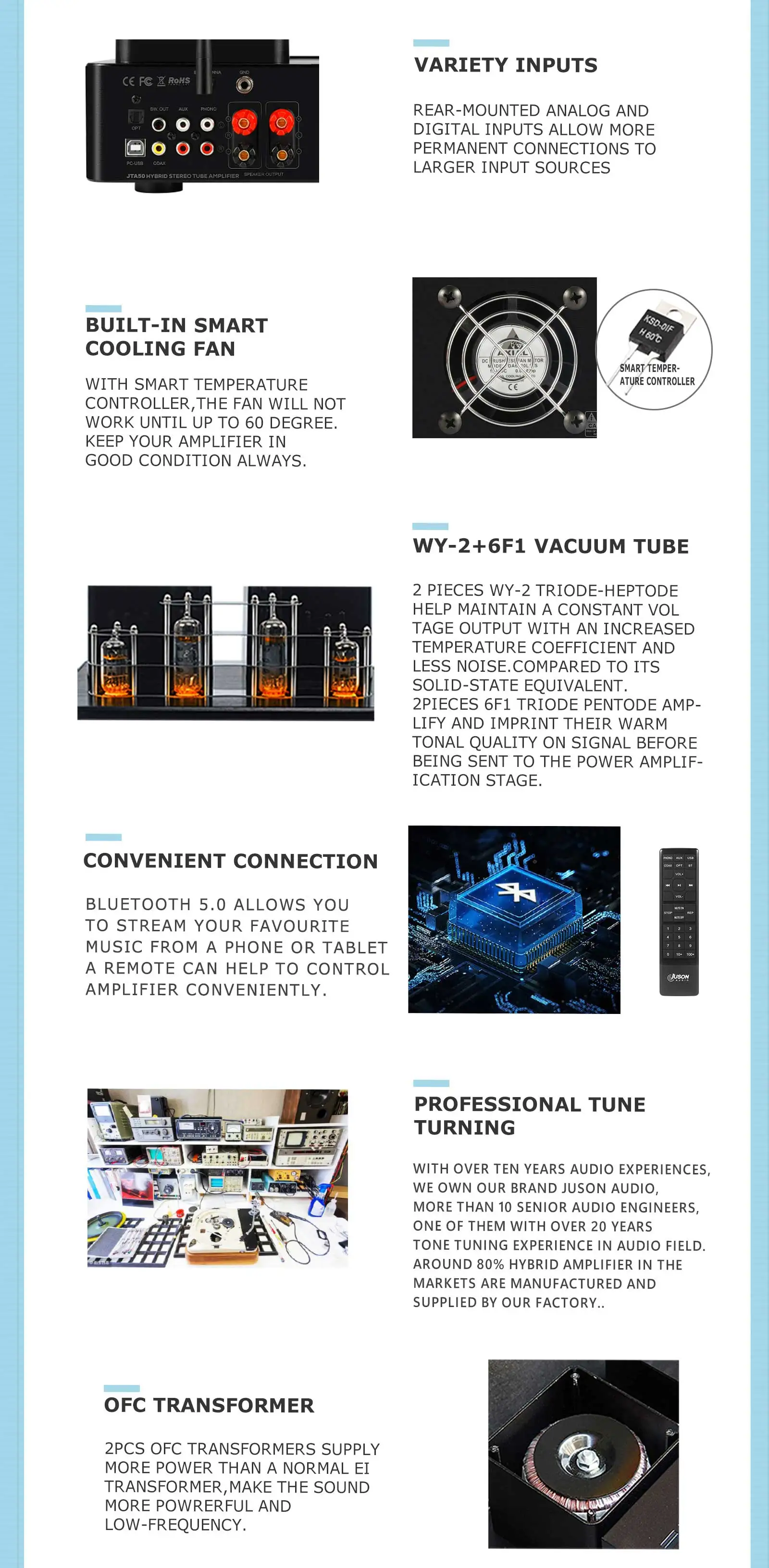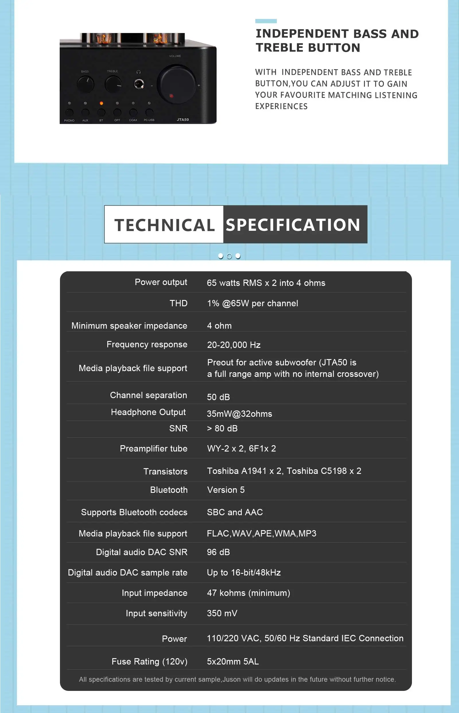 - > Juson áudio jta50 100w amplificador de tubo alta fidelidade vácuo bt5.0 híbrido som estéreo usb rca opt remoto phono para plataforma giratória brasil estoque
