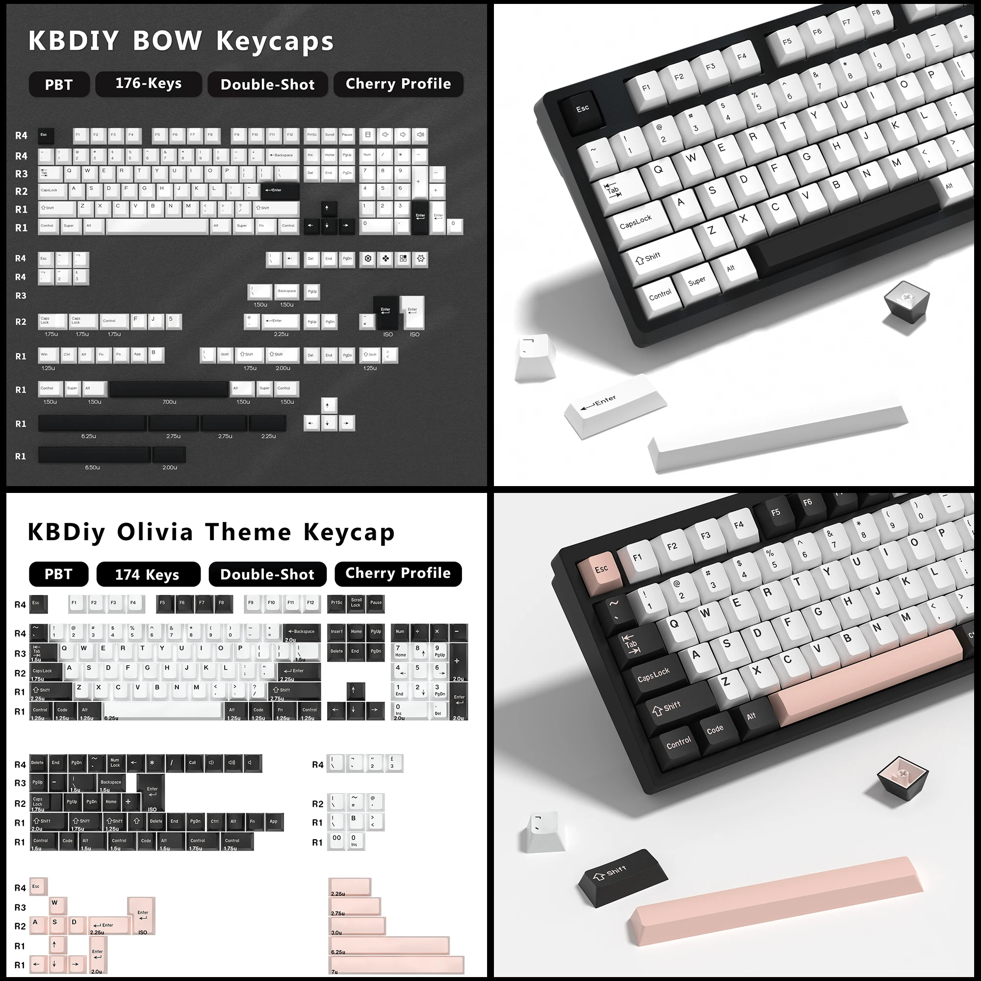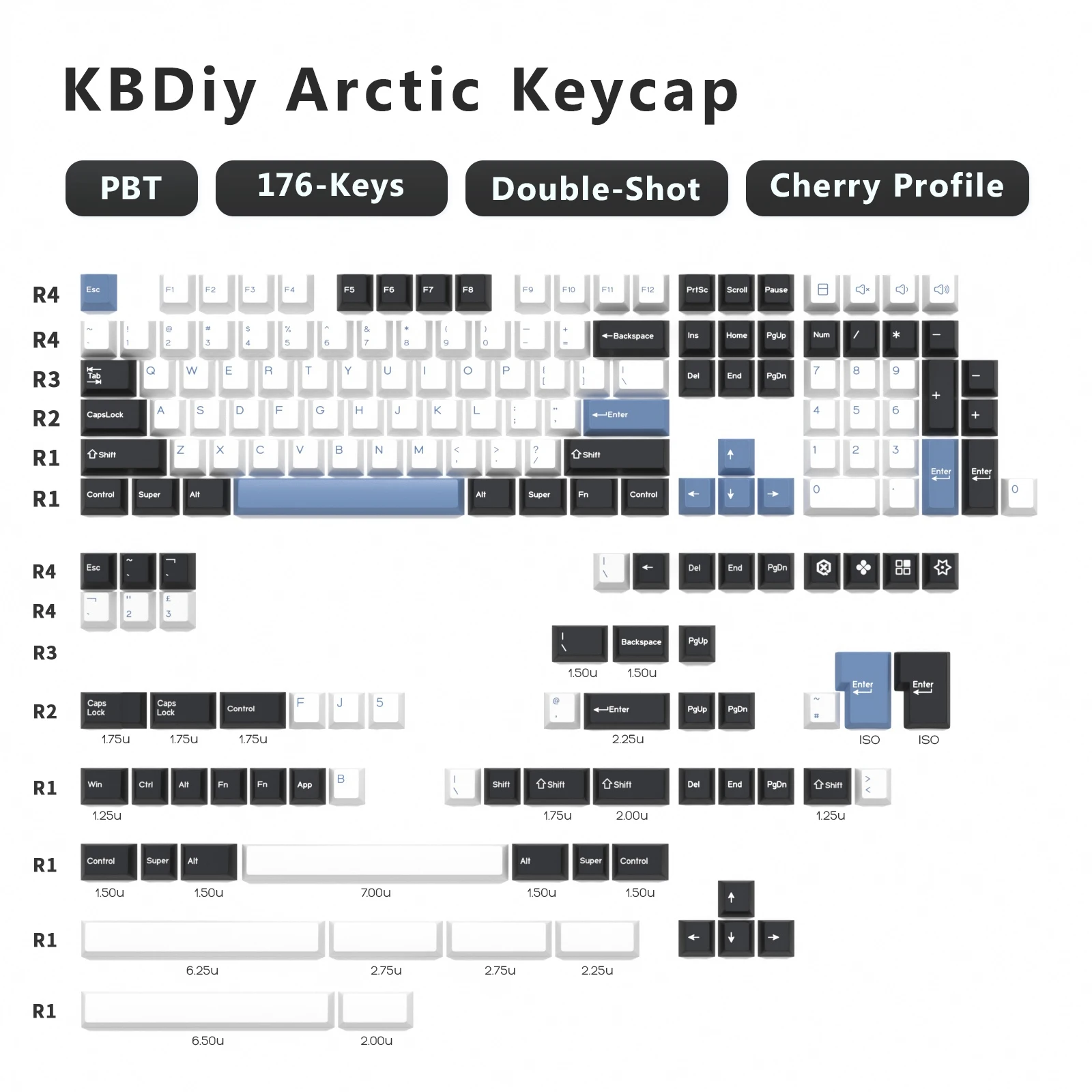 Um pacote completo de alphas e modificadores ANSI dos EUA, incluindo teclas para cobrir vários teclados de 60%, sem teclas, 65%, 75% e tamanho normal.Há um SHIFT extra de 2u e um SHIFT de 2,25u para usuários de Leopold, CONTROLE de 1,75u e teclas CAPS LOCK escalonadas e a configuração clássica de barra de espaço de 7u.Dependendo do seu layout, talvez seja necessário adicionar o kit Extras e/ou Bars para cobertura total.Teclas ESC/ENTER contrastantes também estão disponíveis para um toque de estilo.