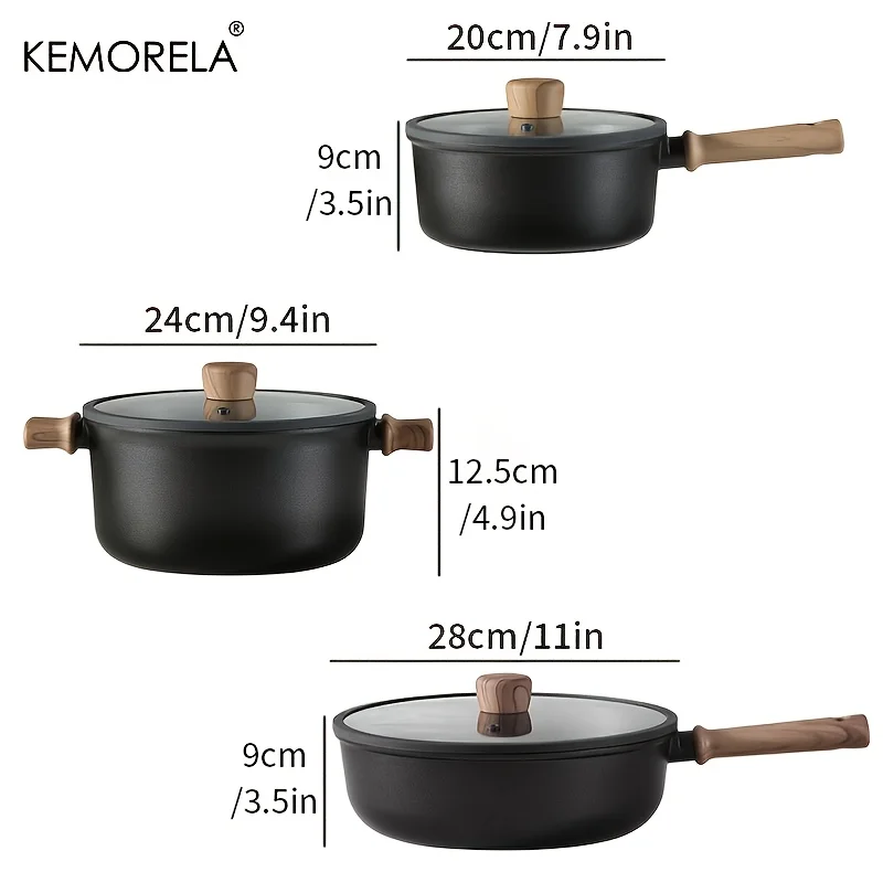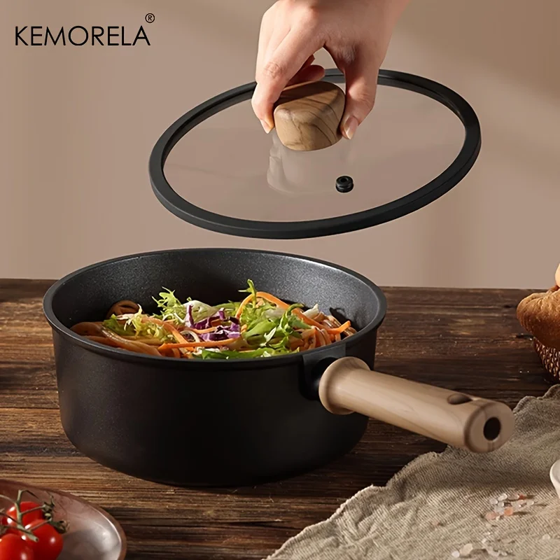 Kemorela frigideira de chef de titânio, panela de leite com tampa, panelas versáteis, alça resistente a queimaduras, vários tamanhos, 1 peça