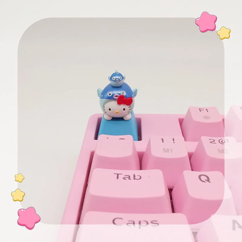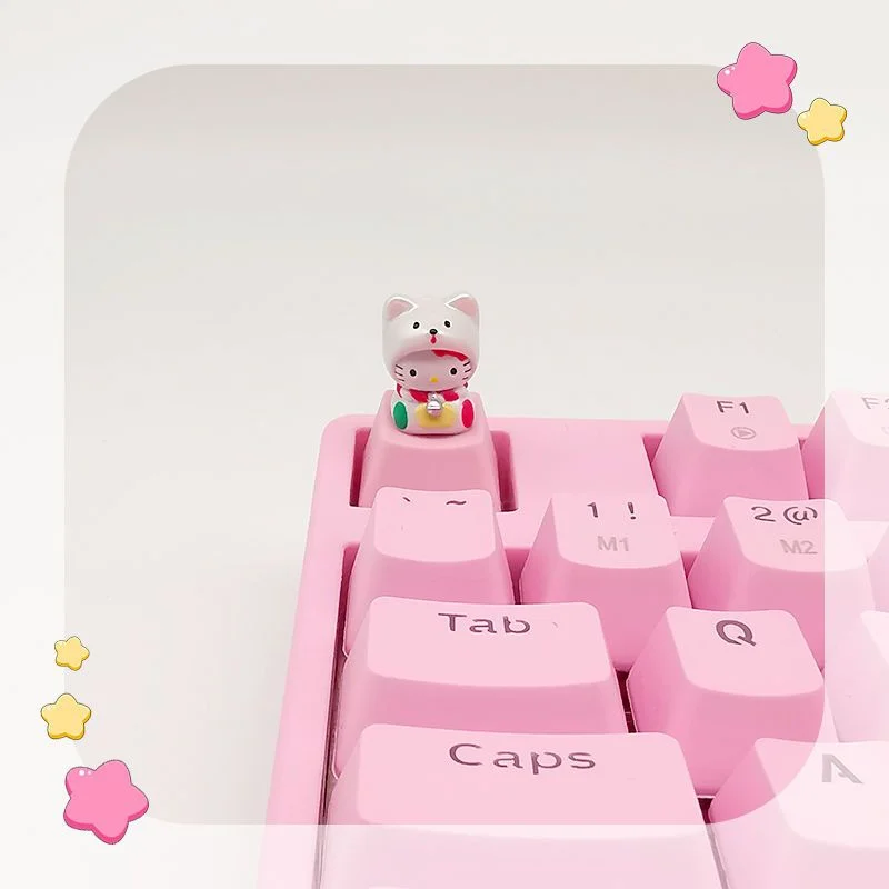 - > Keycap PBT transparente para teclado mecânico, rosa KT gato dos desenhos animados, personalizado personalizado, bonito