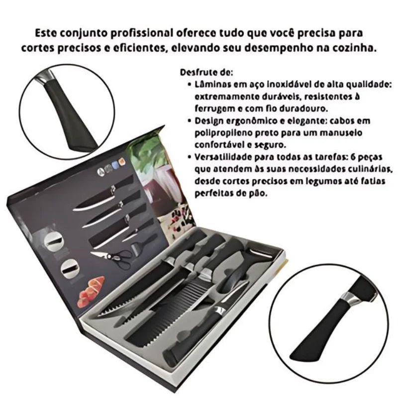 Conjunto De Facas 6 Peças Aço Inox e Plástico Linha Chefe