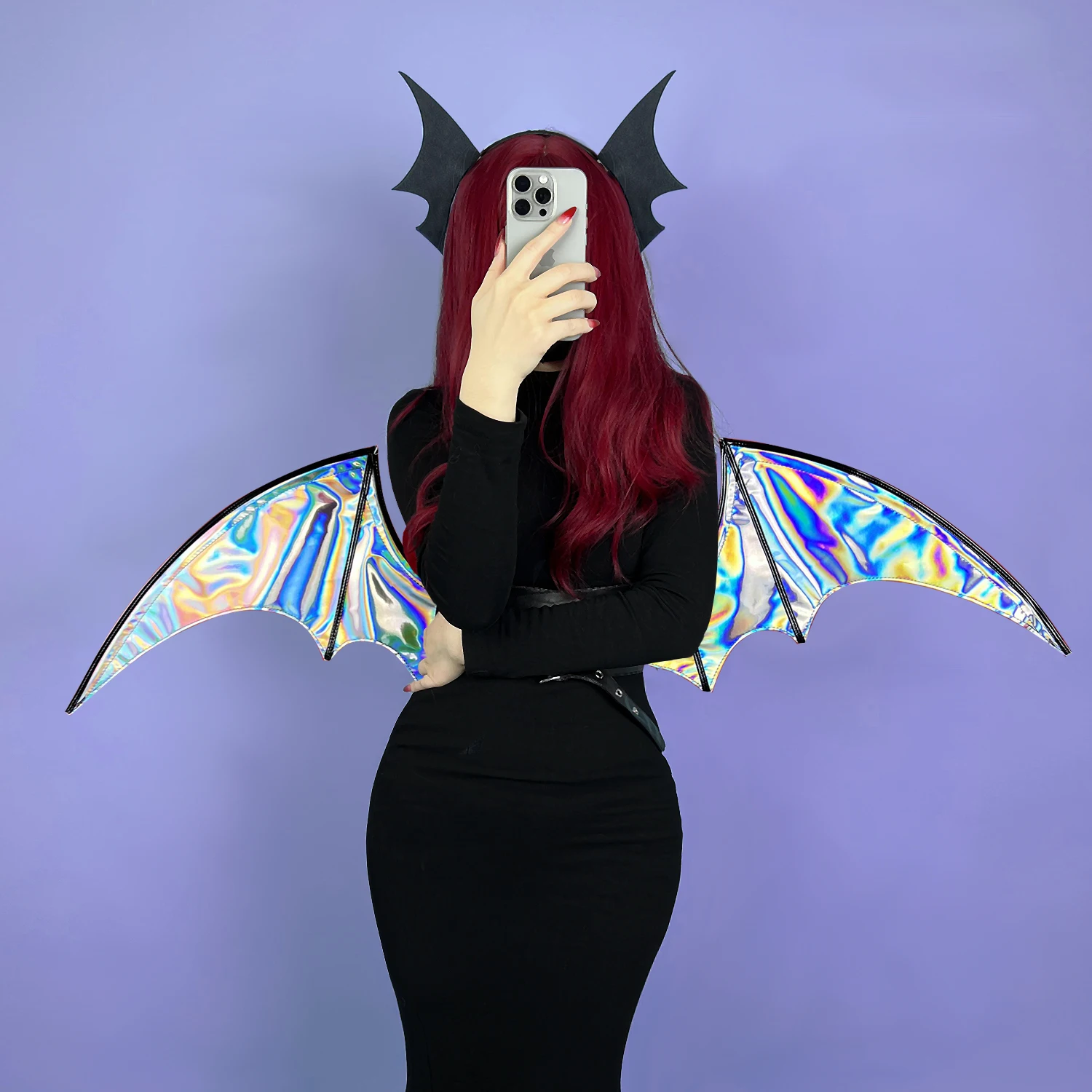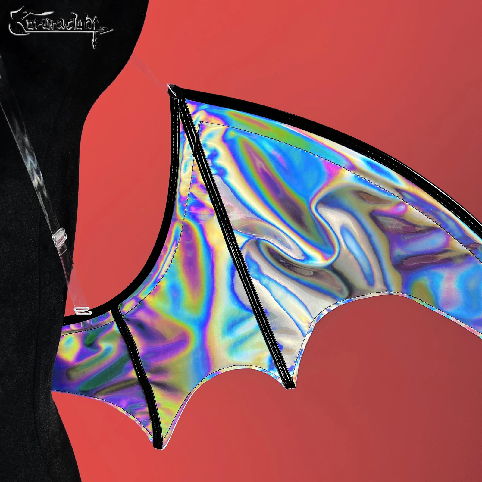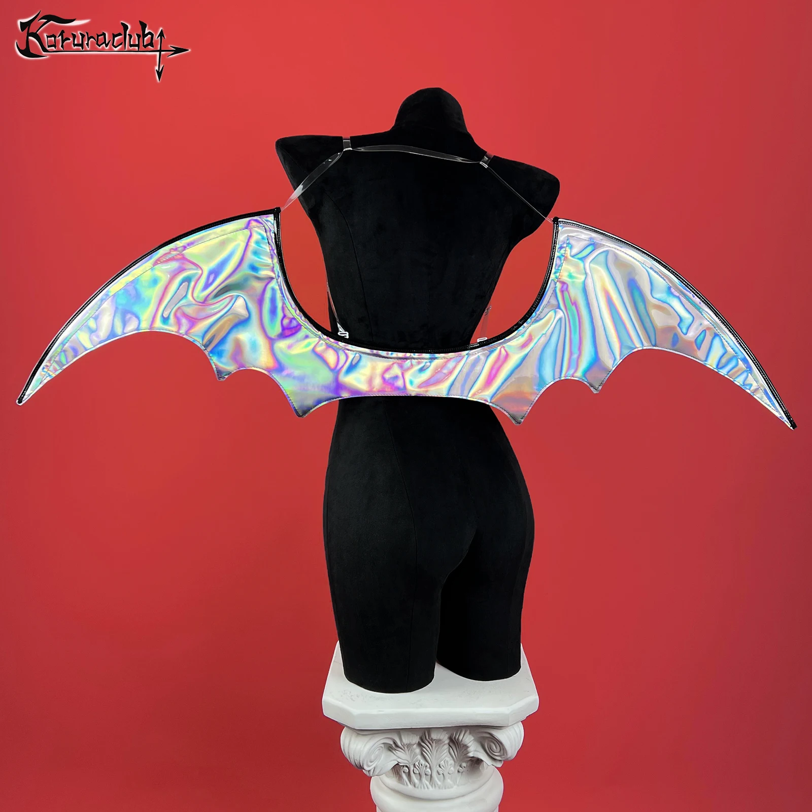 KORURACLUB fantasia prata colorida cosplay bat Laser poli uretano asas de demônio