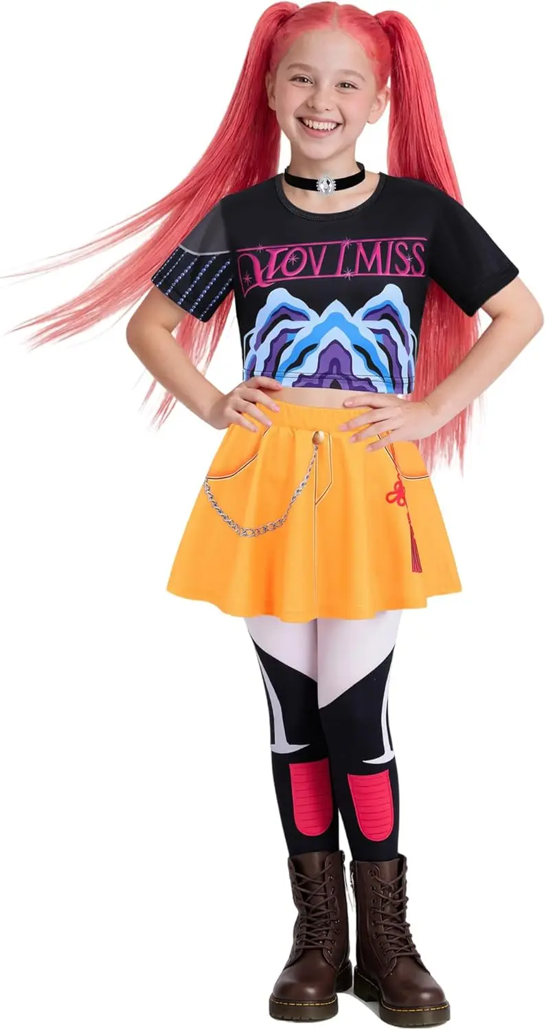 - > Kpop rumi zoey mira festa meninas demônio traje caçadores cosplay outfit jaqueta topo shorts crianças trajes de halloween cantor cosplay