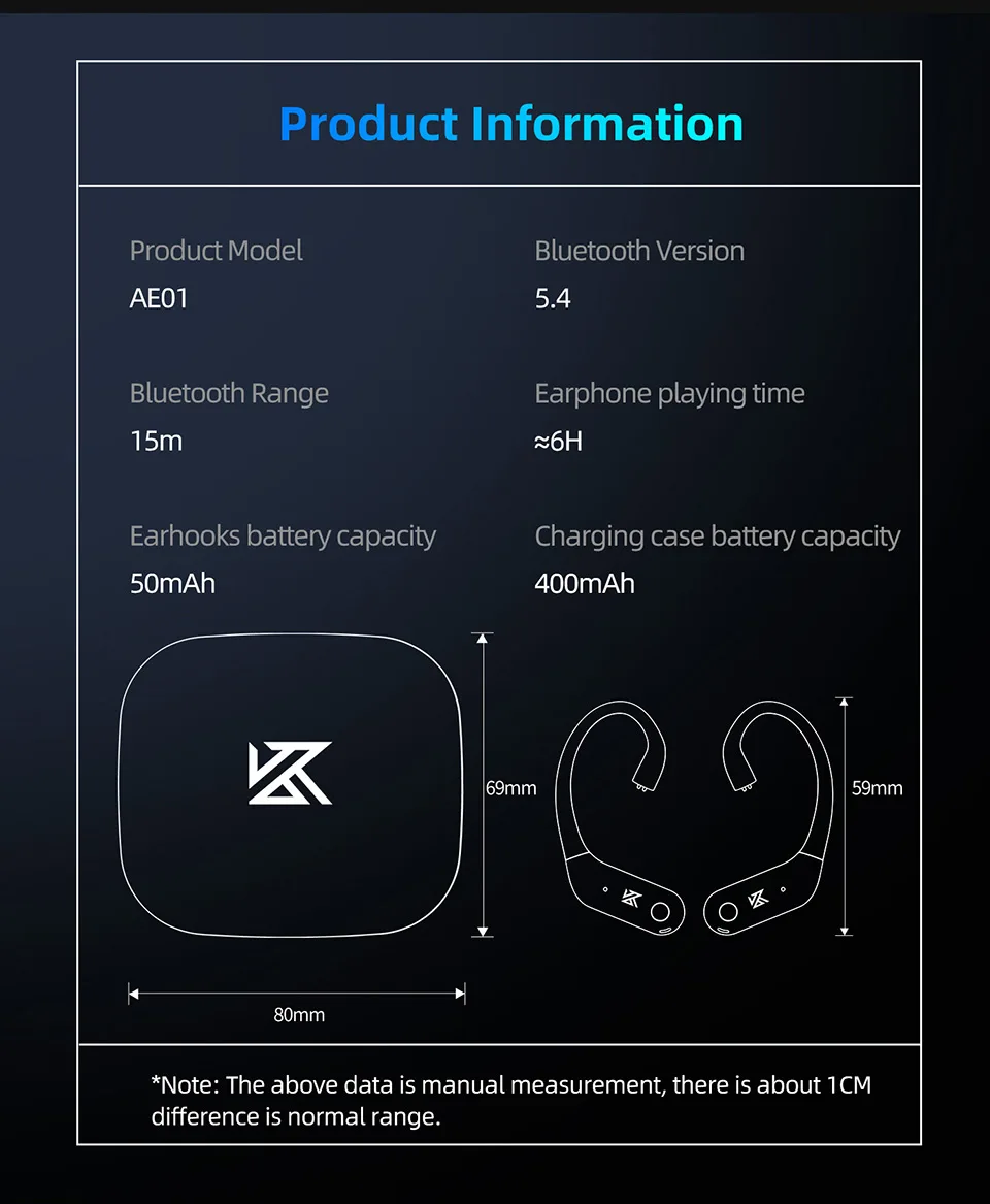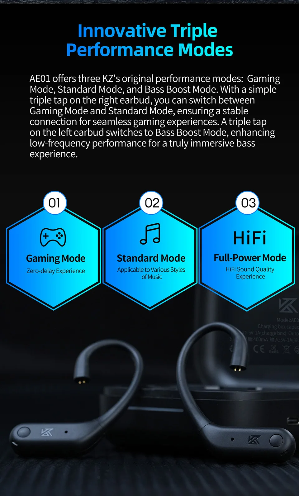 KZ AE01 Cabo de Atualização Sem Fio, Compatível Bluetooth, Hi Fi Ear Hook, C Pin Conector, Caso de Carregamento, 5.4
