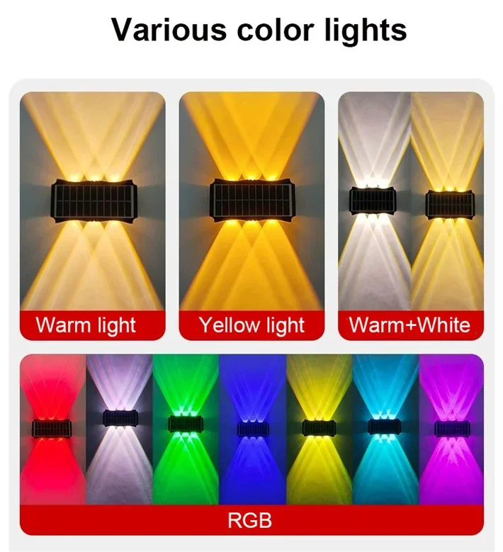 ☀【Luz de parede LED solar para cima e para baixo】 A luz solar tem dois/três feixes de luz para cima e para baixo.Este design realça o brilho da luz e é esteticamente agradável.