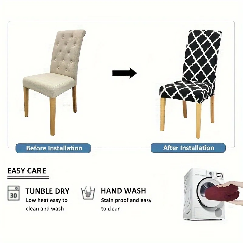 Proteja cadeiras:As capas das cadeiras protegem suas cadeiras de jantar contra manchas, sujeira e pelos de cachorro.Equipado com um elástico costurado para evitar deslizamentos, é mais fixo do que uma capa de cadeira de sala de jantar comum.adequado para a decoração da sua casa.