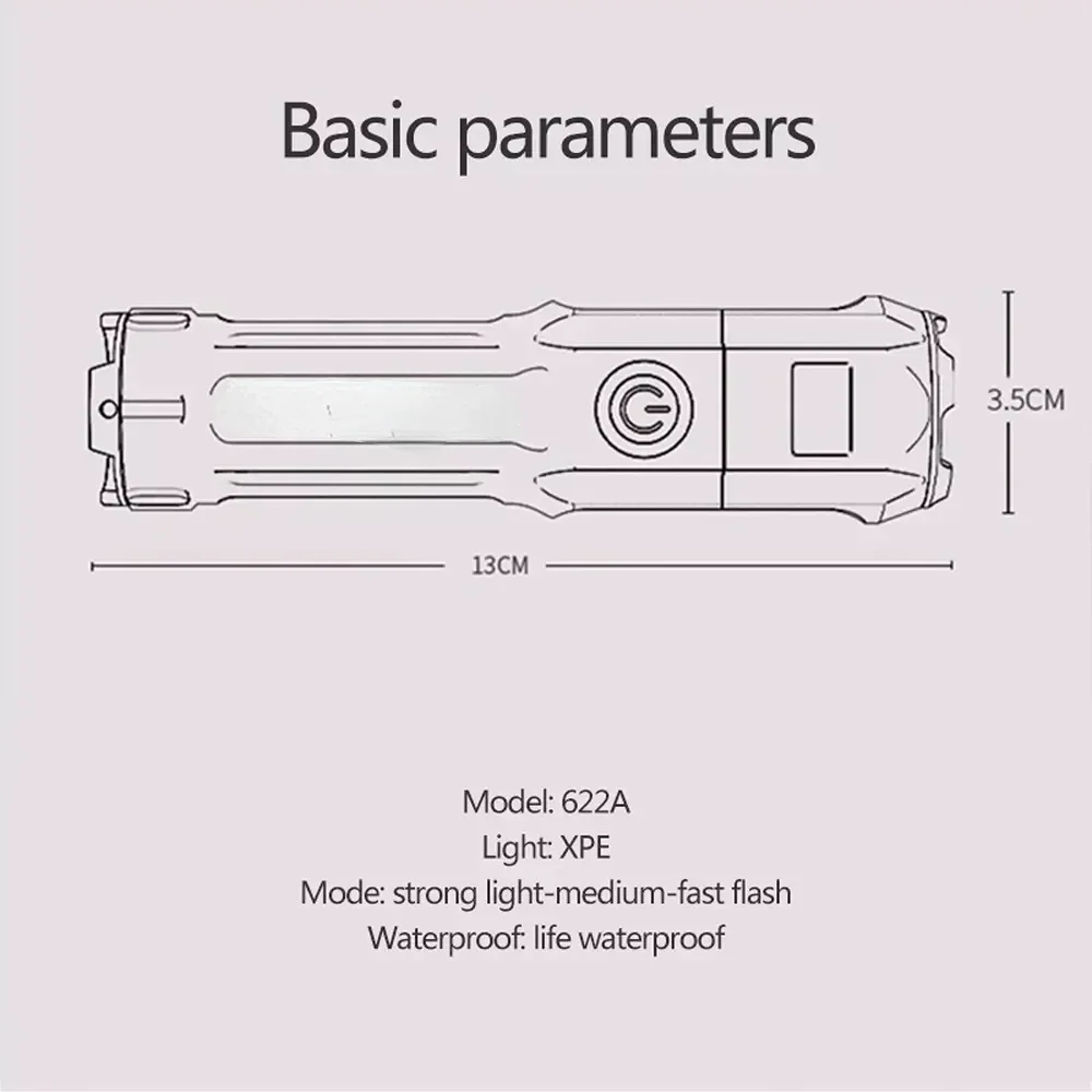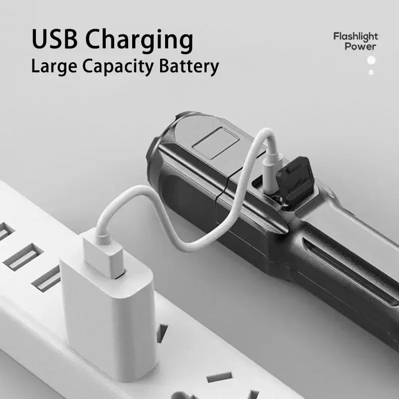 • Recarregável por USB:Não há necessidade de se preocupar em substituir as baterias, basta recarregar a lanterna com um cabo USB.