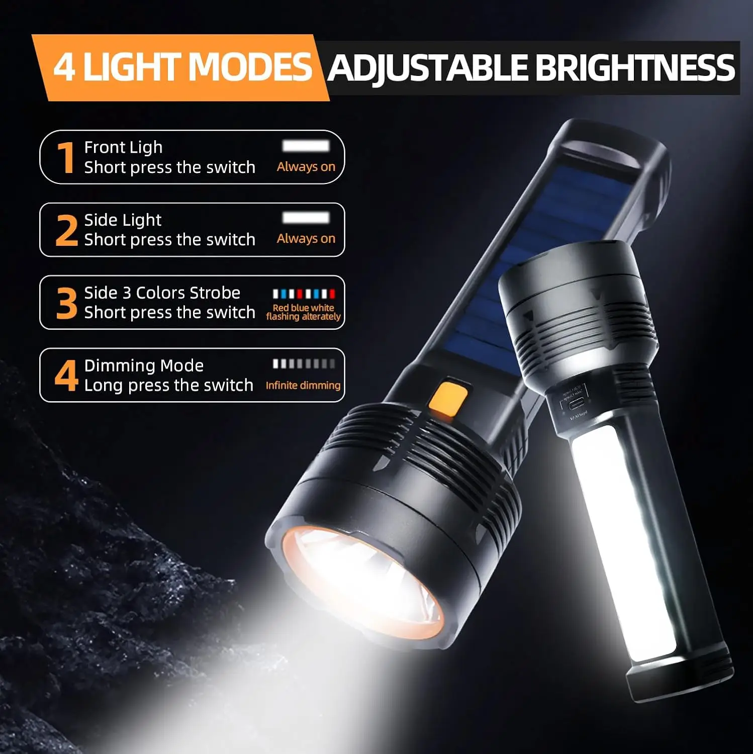 Lanterna LED multifuncional com carregamento solar / USB Super brilhante à prova d'água para casa, camping, caminhadas