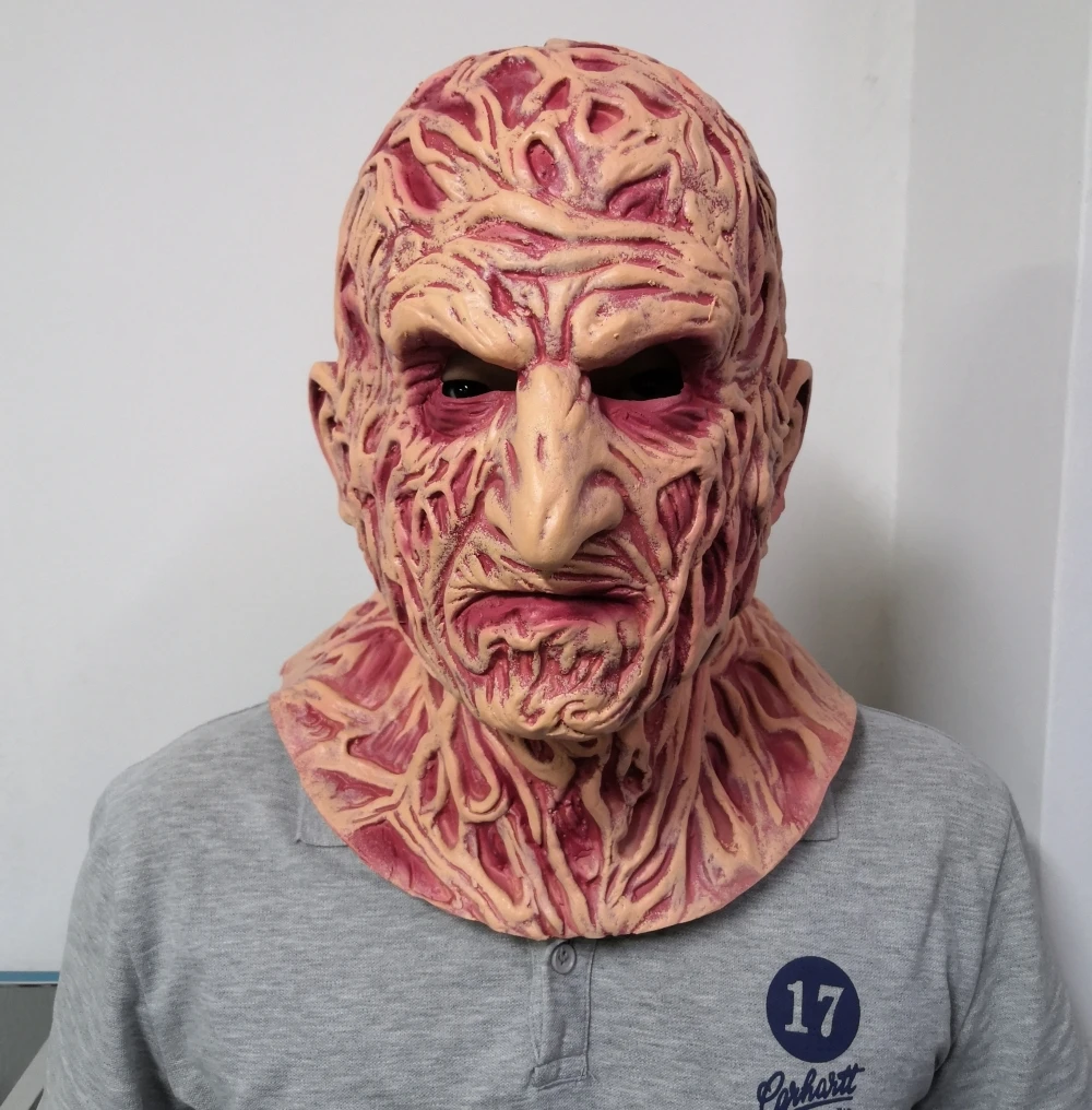 Látex do Freddy Halloween Máscara, Carnaval Cosplay Costume, Horror Full Face Mascara, Demônio Rave, Ghostface Prop, Disfarçar Homem Acessório
