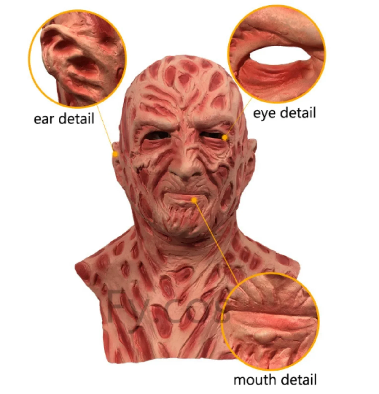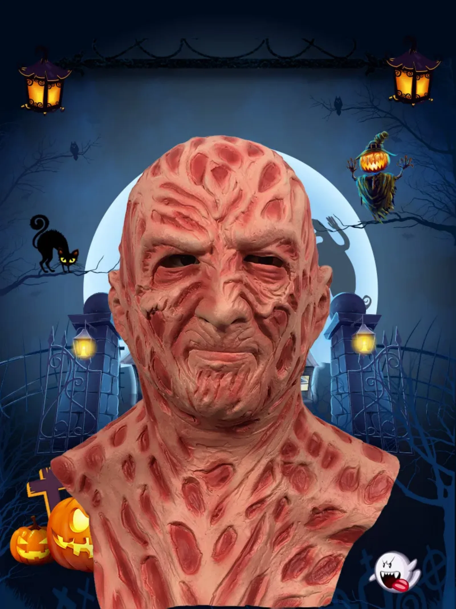 Látex do Freddy Halloween Máscara, Carnaval Cosplay Costume, Horror Full Face Mascara, Demônio Rave, Ghostface Prop, Disfarçar Homem Acessório