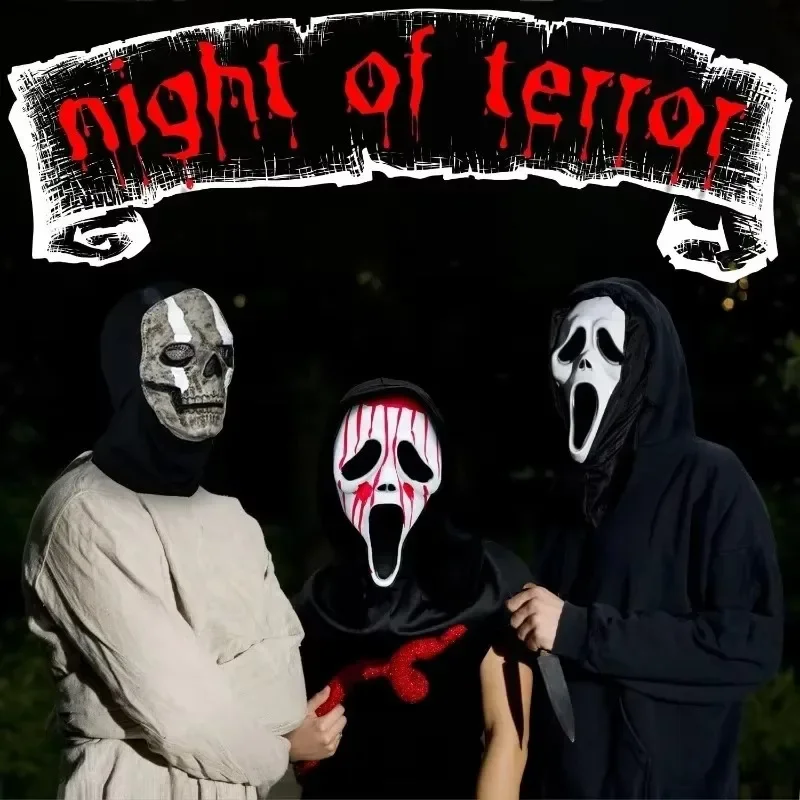 Látex gritar fantasma máscara horror máscara de cabeça cheia brincadeira cosplay traje filme assustador fantasmaface adereços decoração de casa fontes de festa