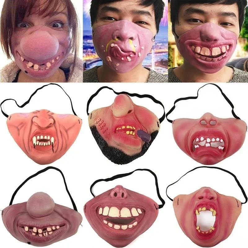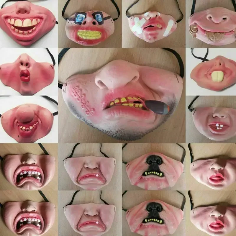 Látex Metade do Rosto Máscaras para Adulto, Máscara de Palhaço, Máscaras Horríveis, Engraçado Elástico, Halloween Party Cosplay Adereços