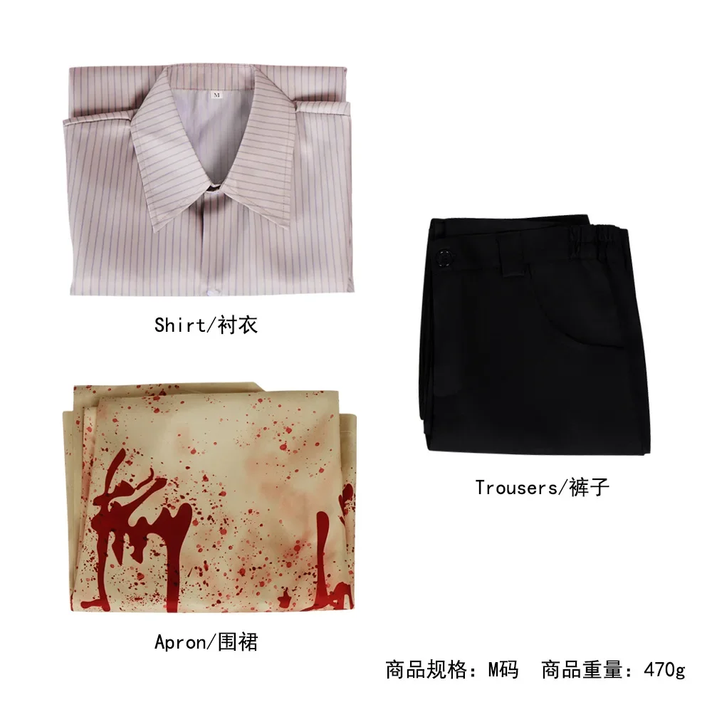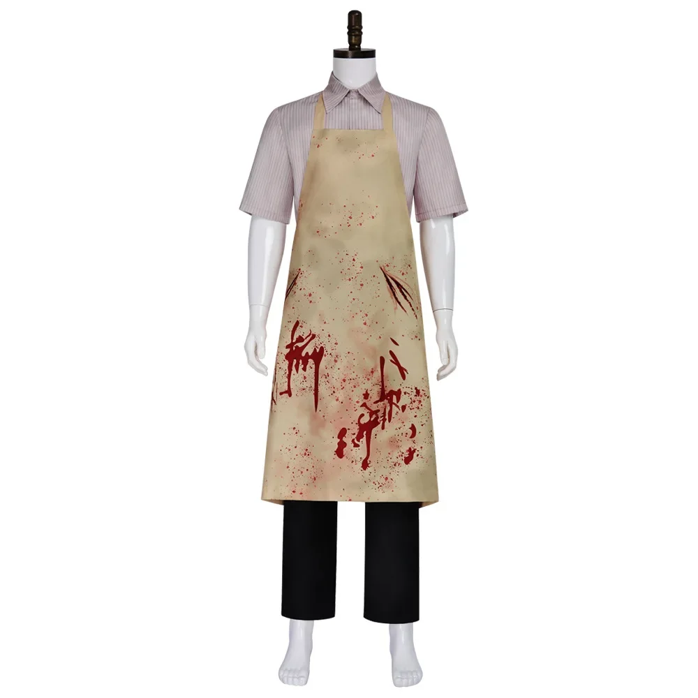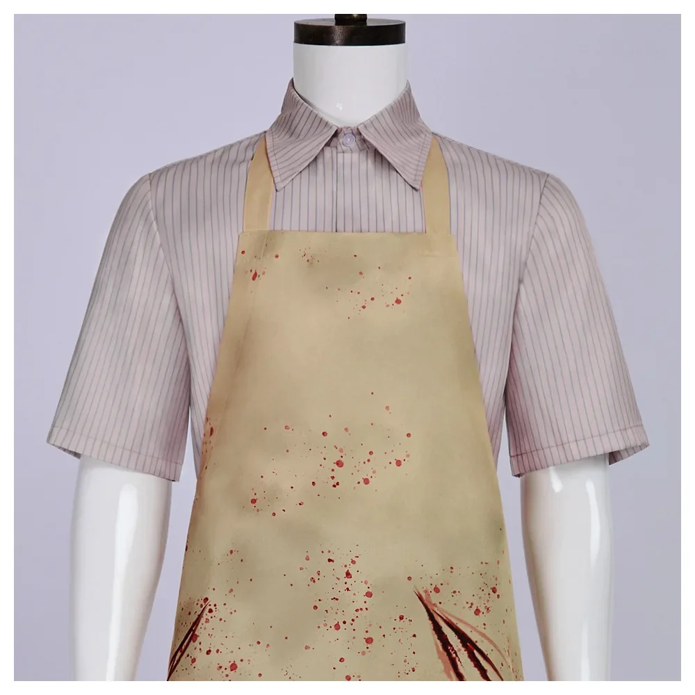 Leathererface cosplay uniforme avental de sangue camisa listrada calça horror anime fantasia festa para halloween carnaval para homem