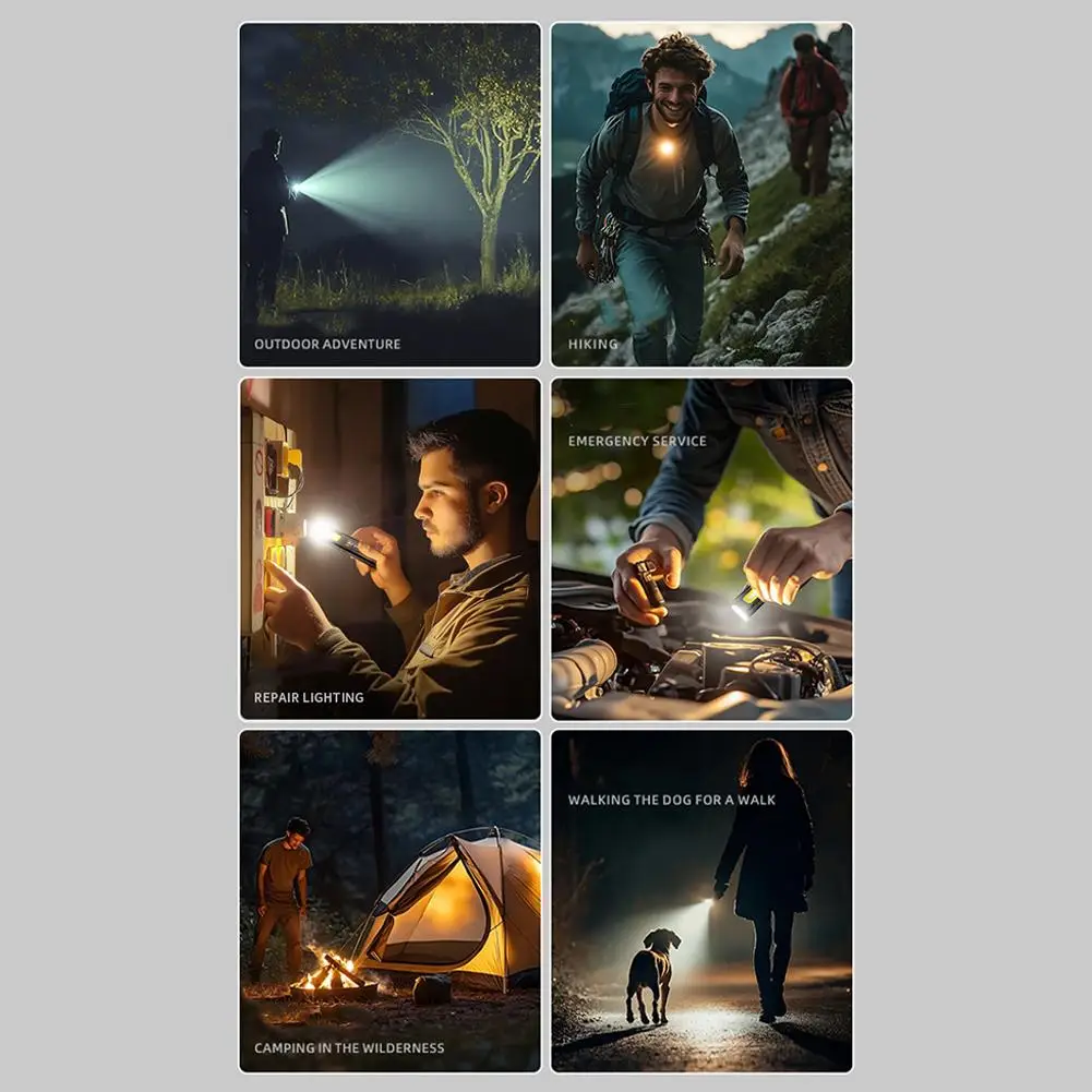 1.Esta lanterna portátil EDC pesa apenas 30g ultraleve para transporte durante todo o dia, com um clipe de tampa integrado que permite prendê-la em bolsos, chapéus ou bolsas.Seu ímã traseiro também permite o uso com as mãos livres, colando em superfícies metálicas como caixas de ferramentas ou carrocerias de automóveis, perfeito para reparos externos, domésticos ou deslocamentos diários.
