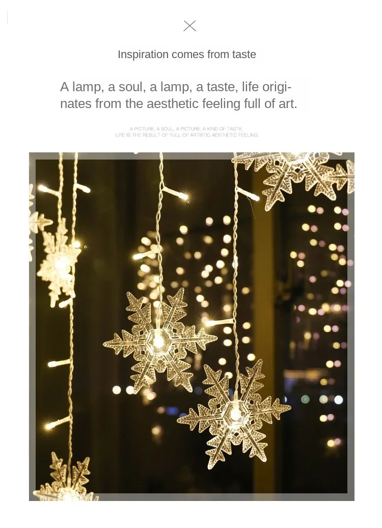 LED Fairy String Luzes De Natal, Floco De Neve Cortina, Guirlanda Impermeável, Festa De Feriado, Decoração De Natal, 3.5m, 2024