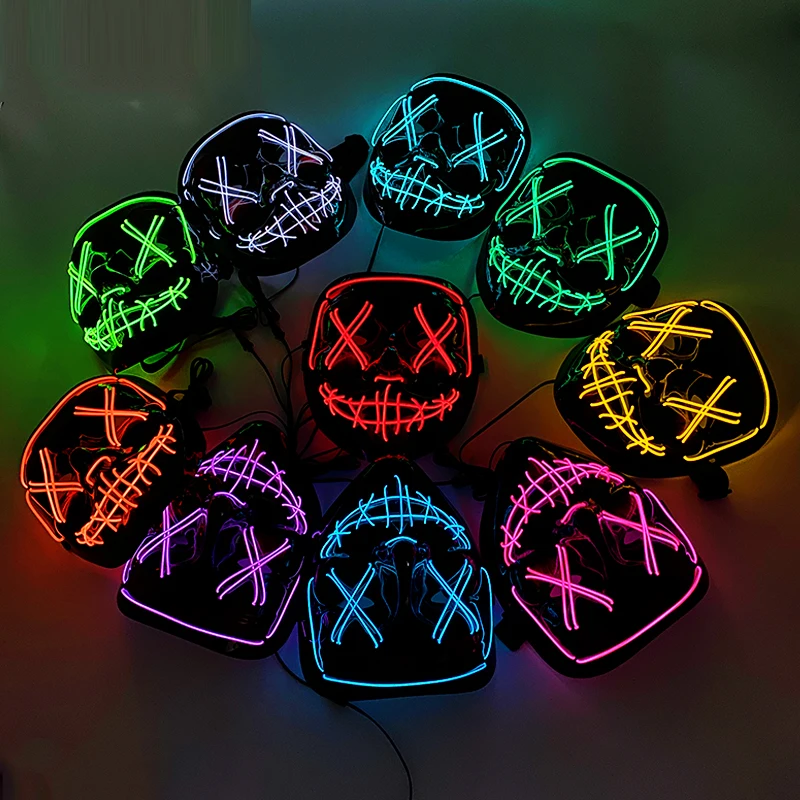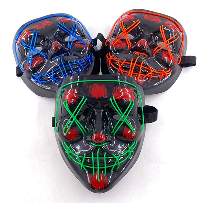 LED Light Up Luminous Neon Máscara, Grande Halloween Máscaras Assustadoras, Cosplay Costume Supplies, A Purga, Ano Eleitoral
