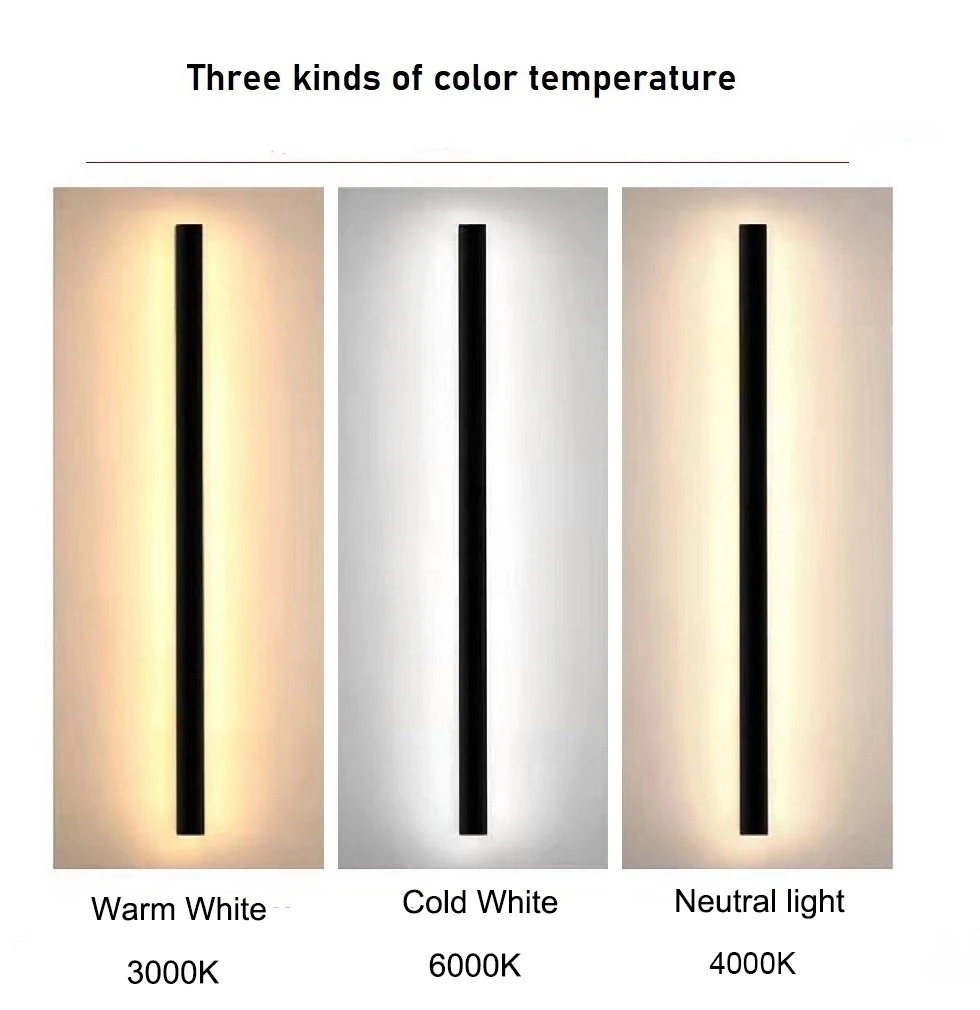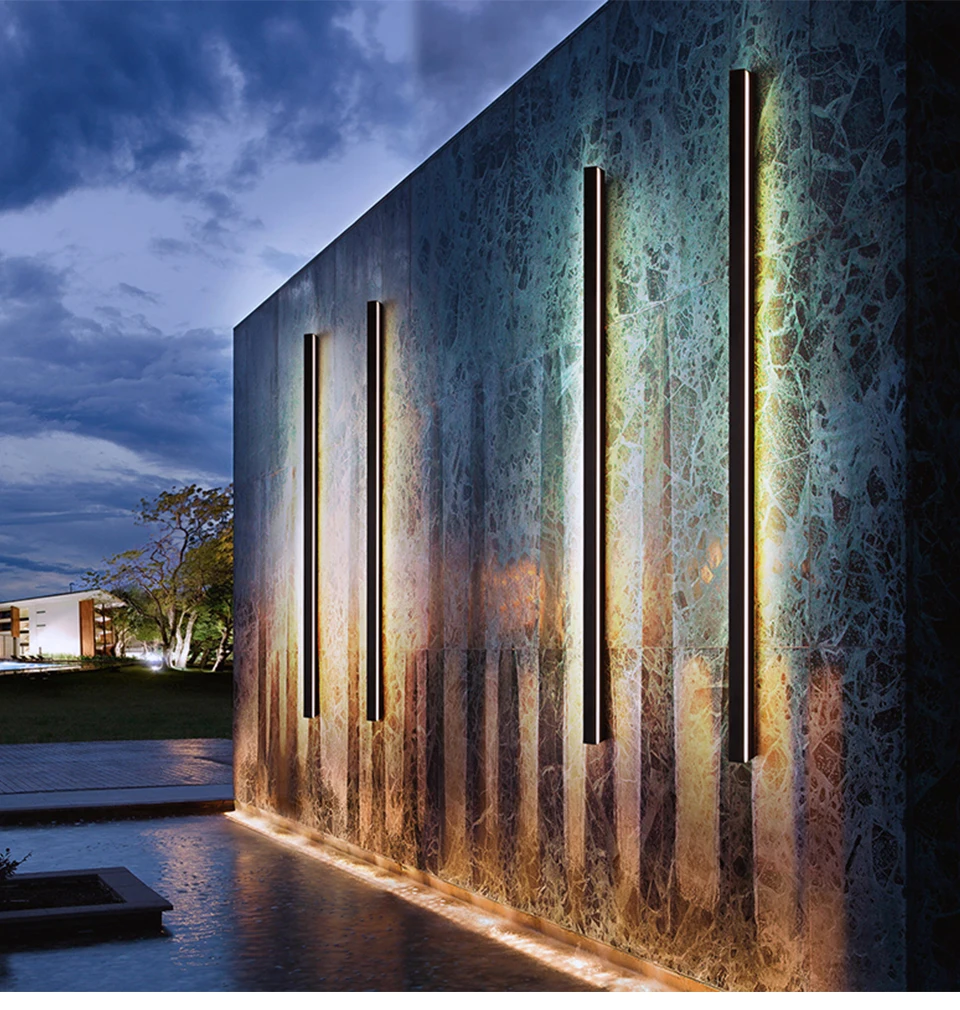 Led ao ar livre luz de parede longa luz de parede moderna à prova dip65 água ip65 villa varanda jardim lâmpada parede led exterior preto arandelas parede