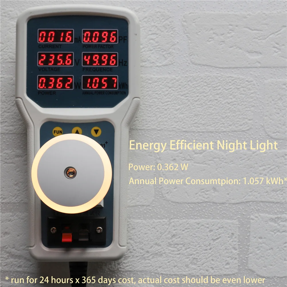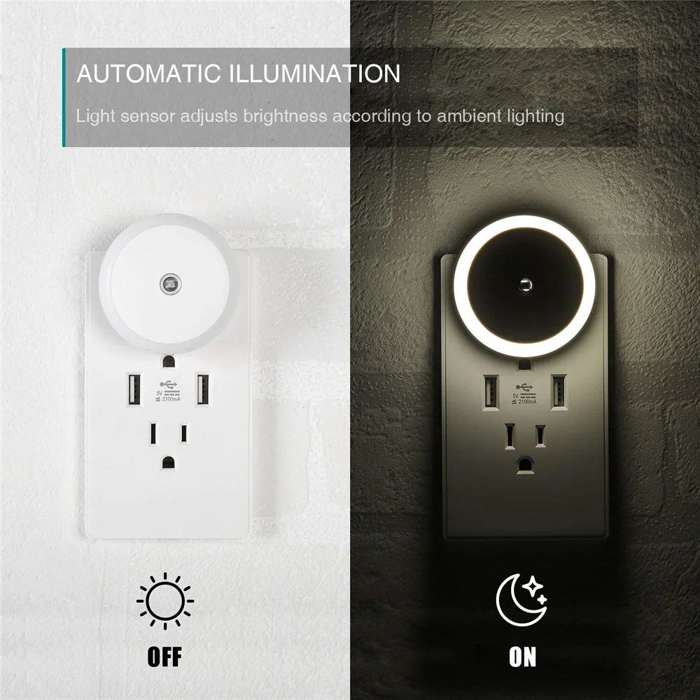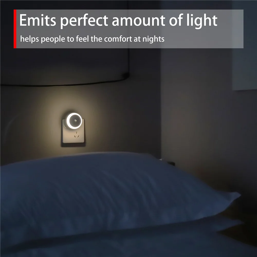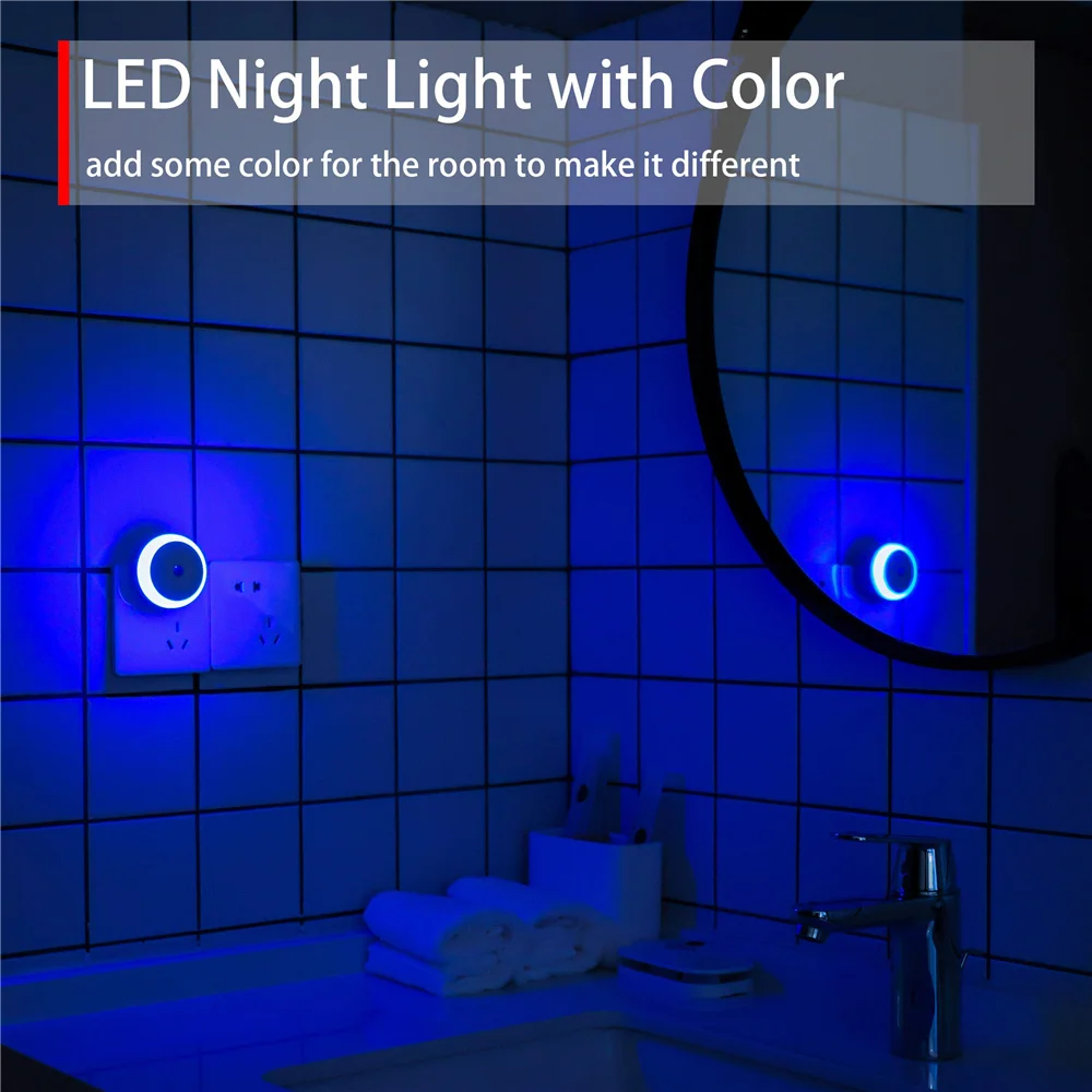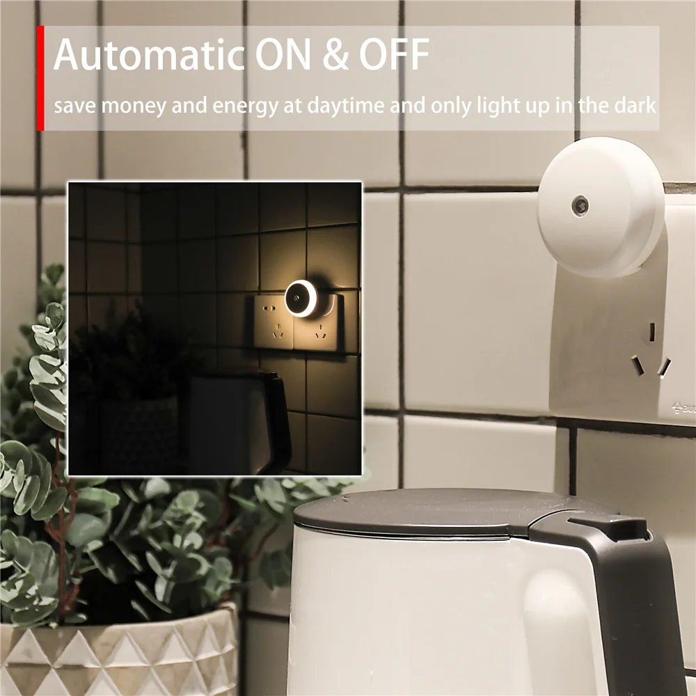 Plug in night light with sensor, smart, energy saving. Wide voltage range compatible from 110V~240V and 2-way plug in. Stay securely in the wall, ideal for bathroom, hallway, stairs, kitchen, bedroom, restroom and any other rooms.
