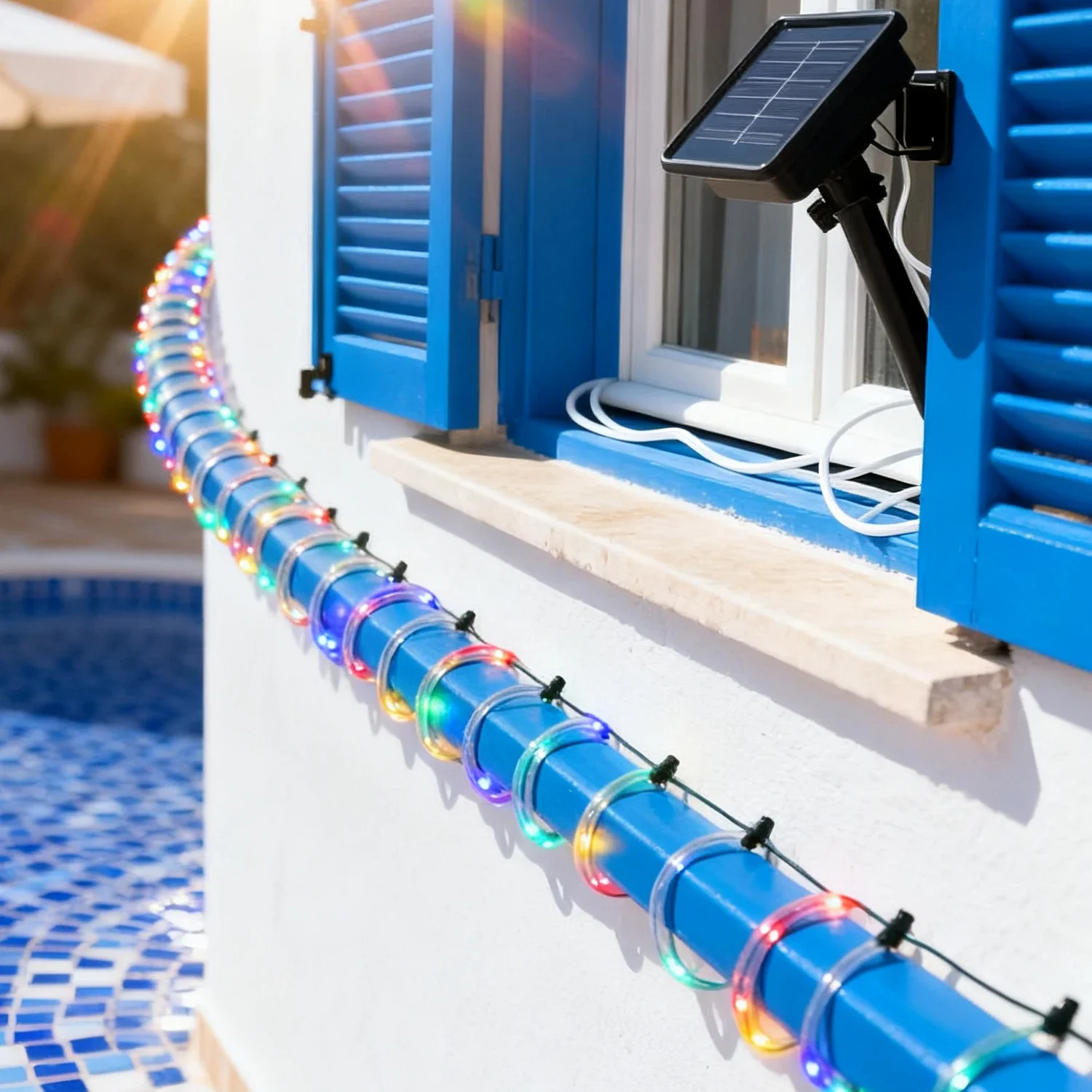 Led solar corda luz de tira corda 7m jardim iluminação rua guirlanda natal luzes fadas ao ar livre ip65 à prova dip65 água tubo lâmpada