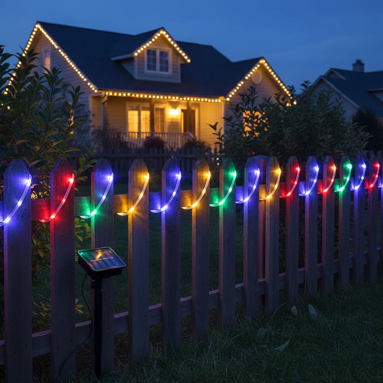 O pacote inclui: 1 conjunto (1 cordão de luz + 1 plugue de aterramento + 1 painel solar)