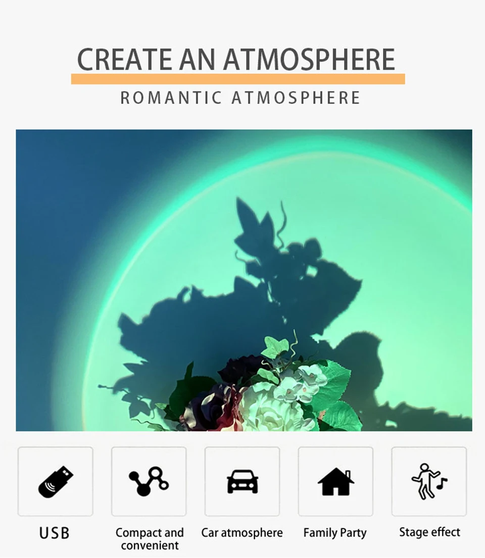 • Foto Projetor:Projete belas fotos do pôr do sol em sua parede ou teto para uma decoração única e atraente.
