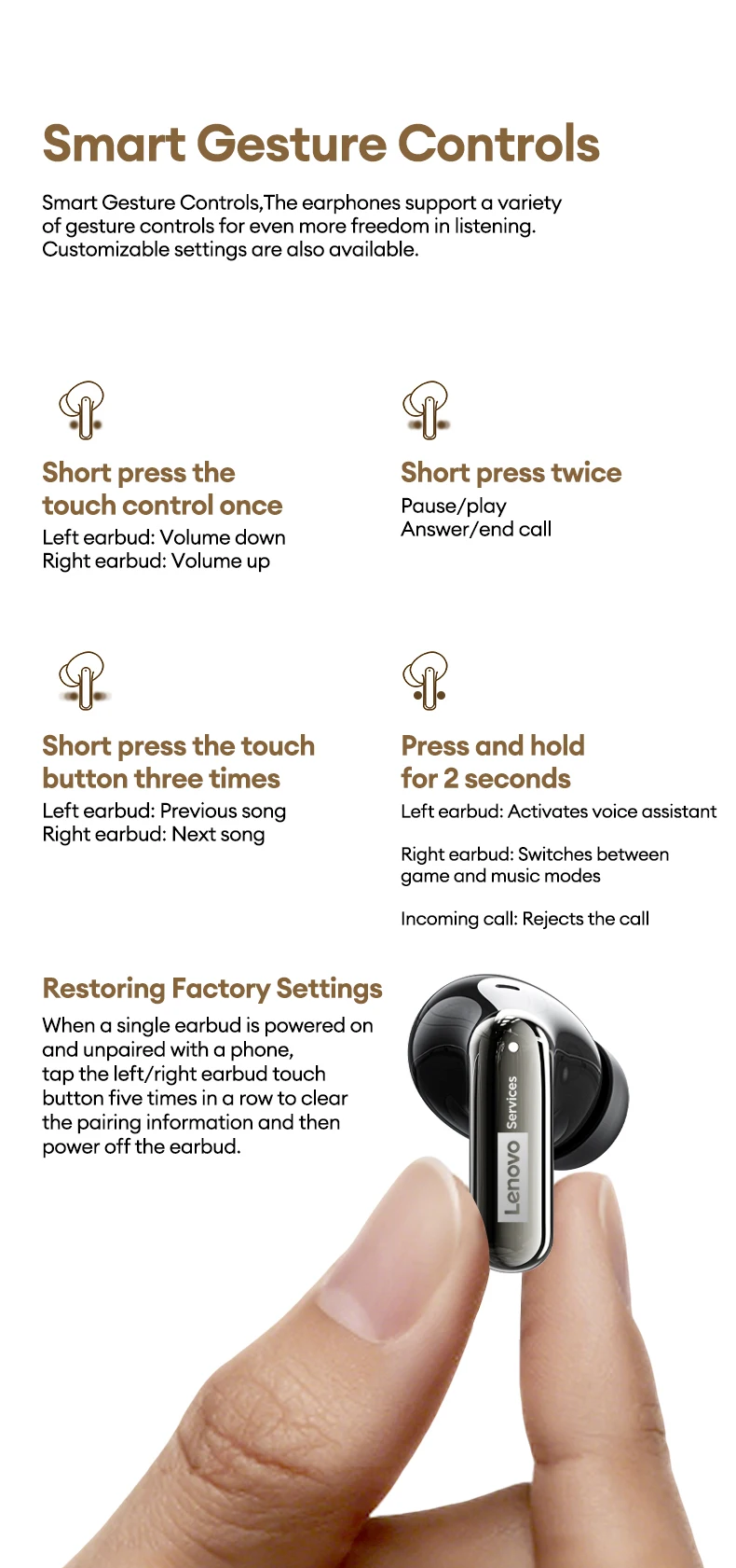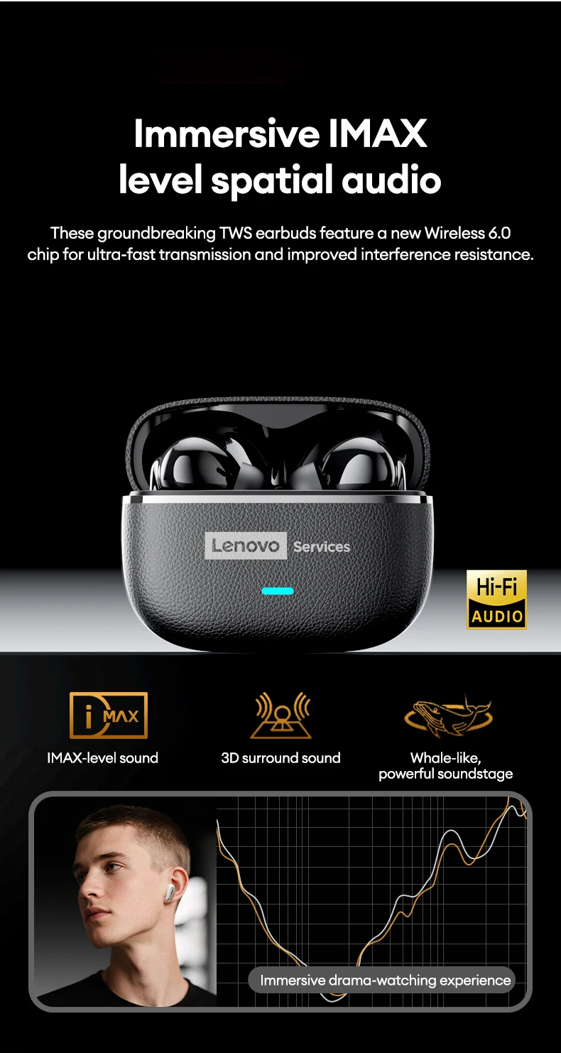 Lenovo le208 tws bluetooth 6.0 fones de ouvido sem fio couro estéreo enc com cancelamento ruído fone 38ms baixa latência gaming headset