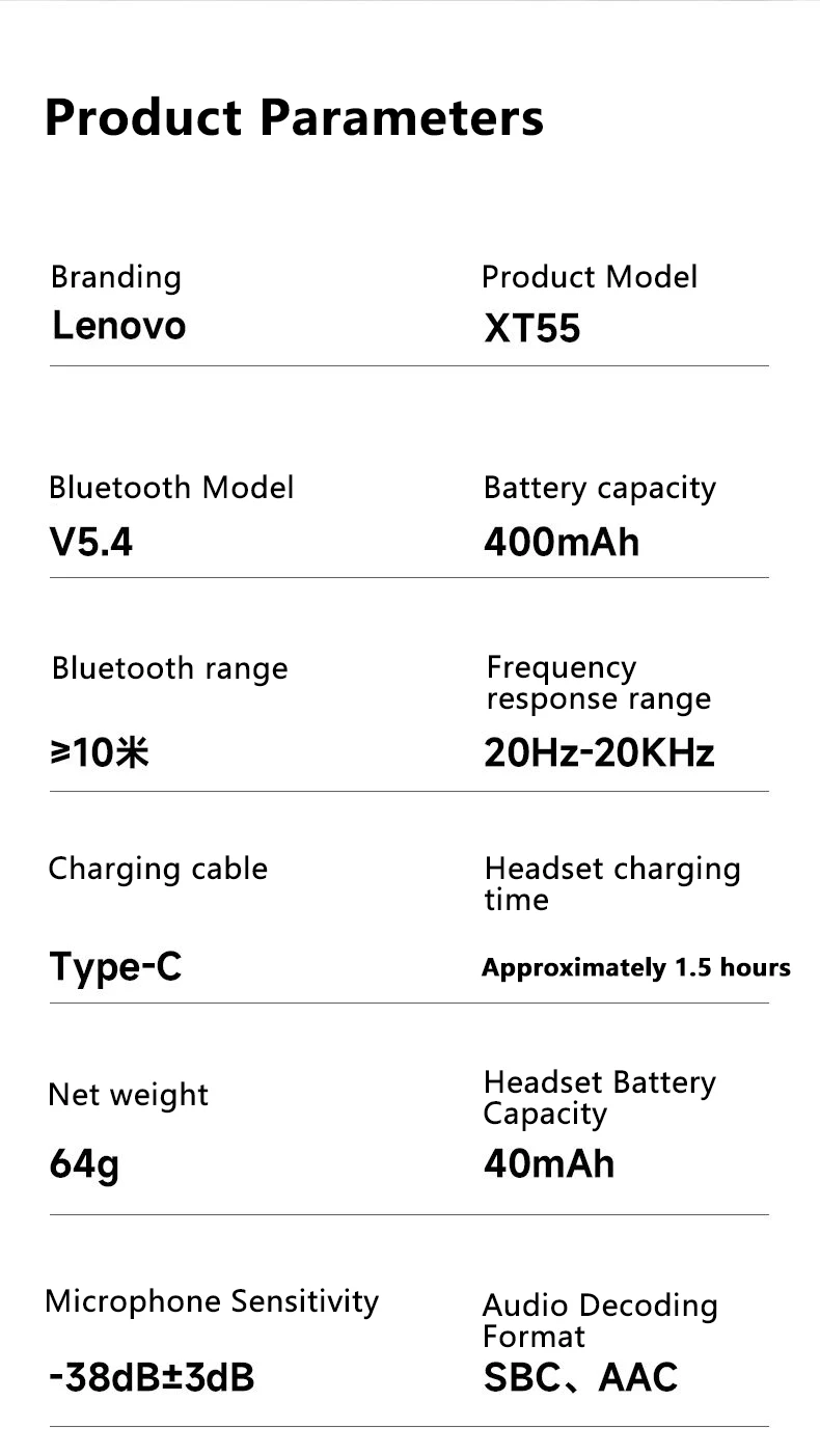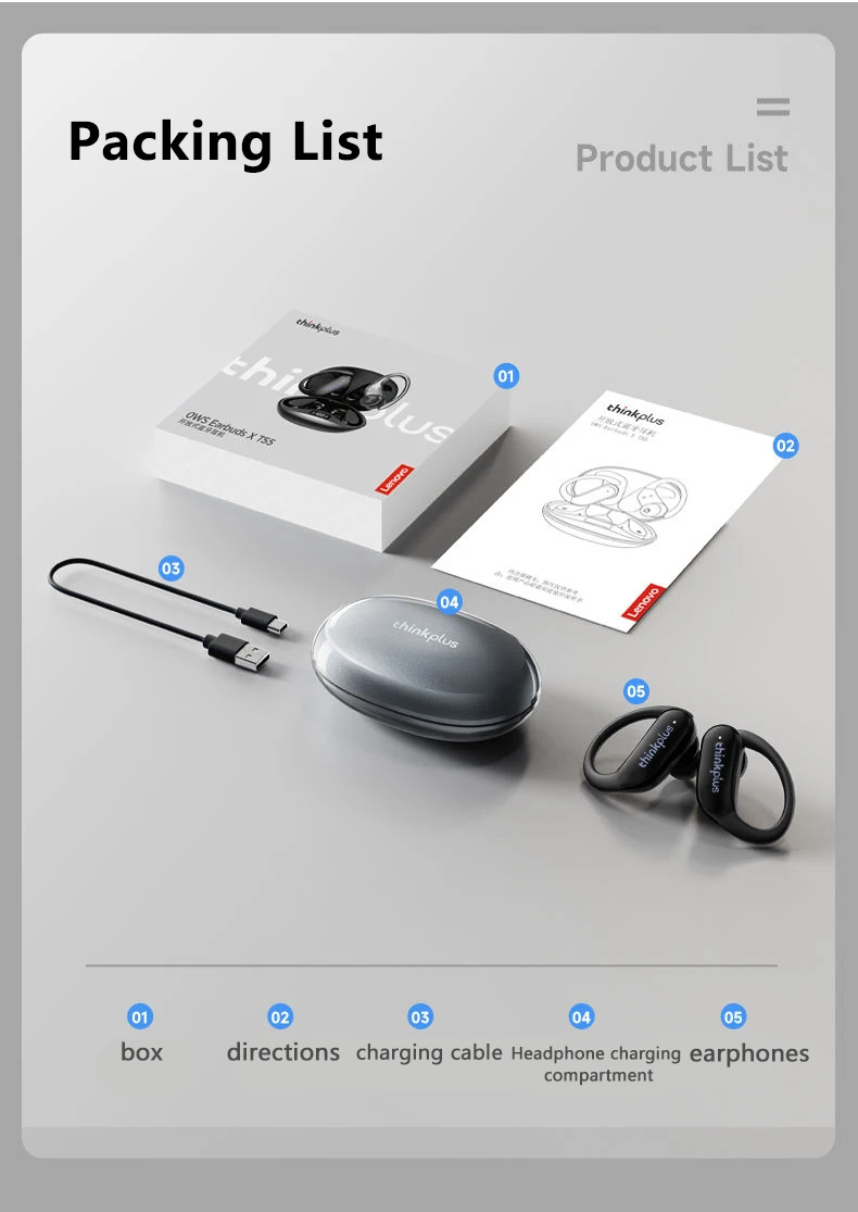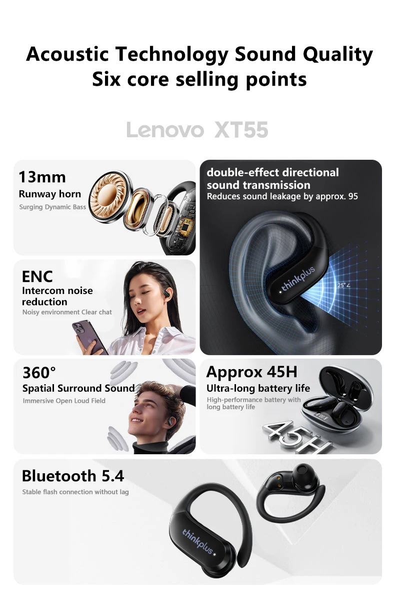 Novo original lenovo xt55 sem fio bluetooth 5.4 fones de ouvido gancho de orelha esportes hifi estéreo à prova dwaterproof água