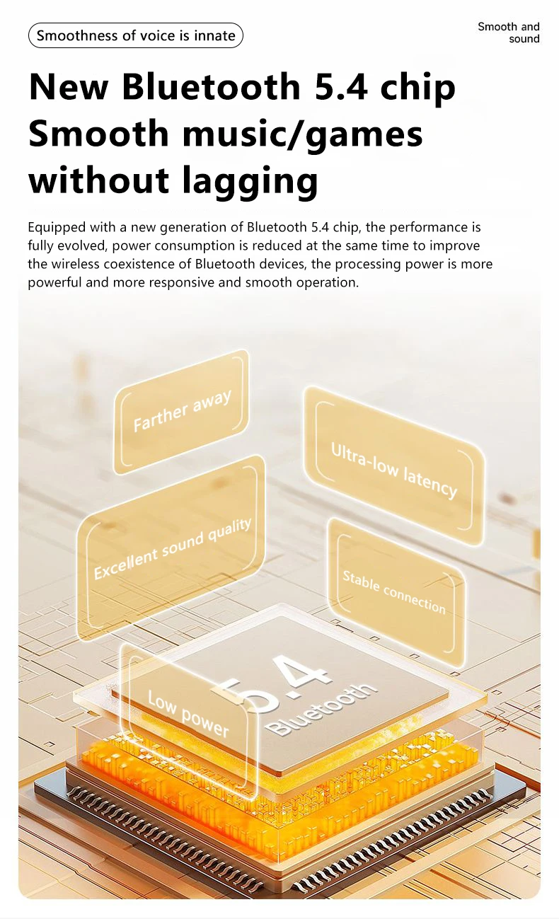 Com o avançado sem fio 5.4 chip, basta abrir a caixa para conectar, garantindo som e imagem sincronizados com latência ultrabaixa para uma experiência perfeita.A nova geração de tecnologia de alta velocidade aumenta a velocidade de transmissão em 90%, garantindo uma experiência mais suave.