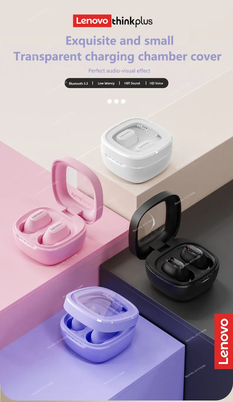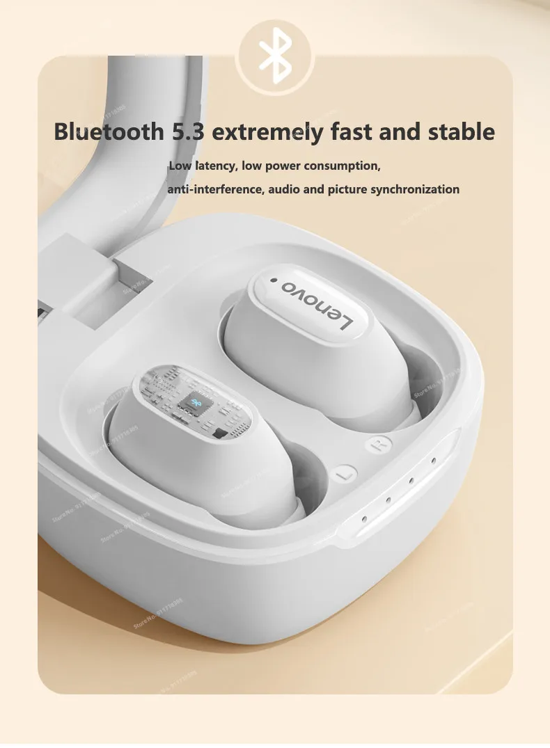 - > Lenovo-XT62 Bluetooth 5.3 Fones De Ouvido, Sem Fio, HiFi, Esporte, Redução De Ruído, Fone De Ouvido com Microfone, Controle De Toque, TWS, Original