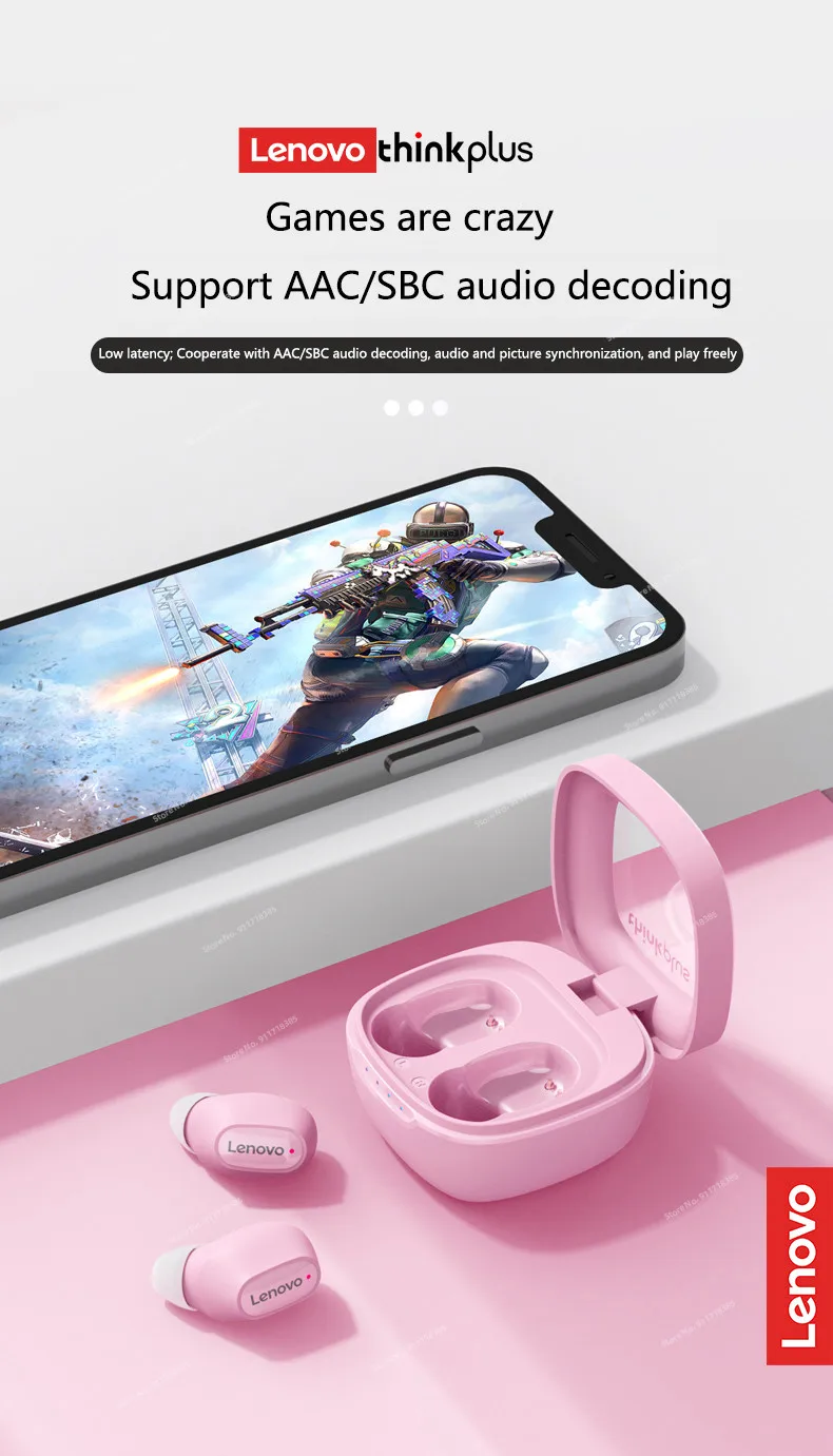 Fones de ouvido de música de design mais recentes da Lenovo em 2023., baixa latência, confortável de usar, decodificação de áudio AAC/SBC HD