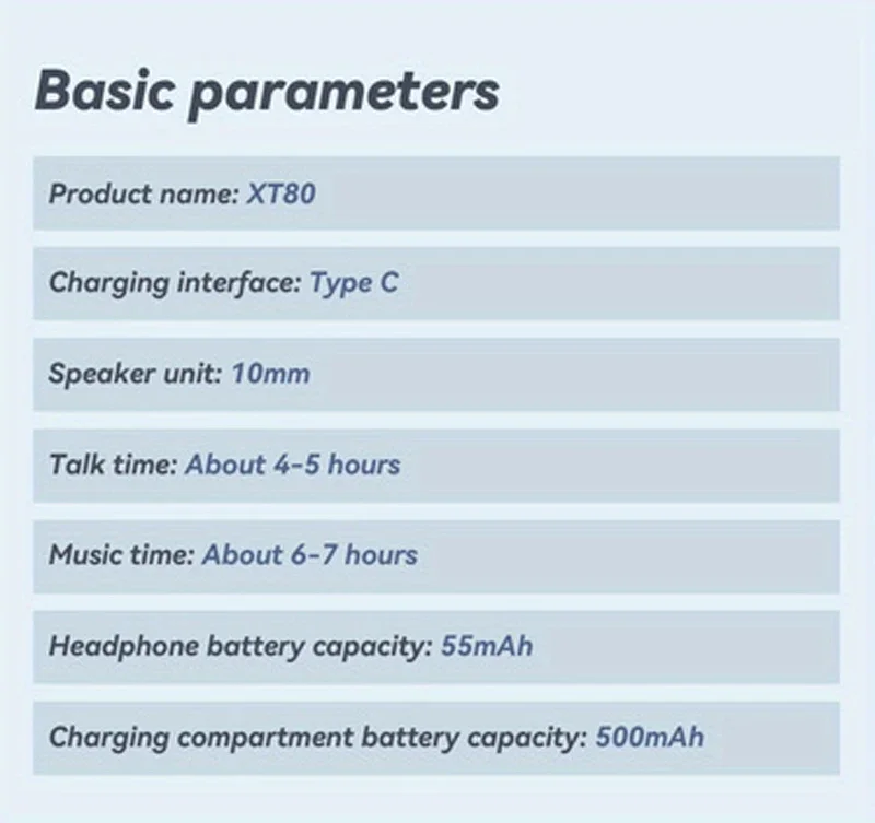 Capacidade da bateria do estojo de carregamento: 500mAh