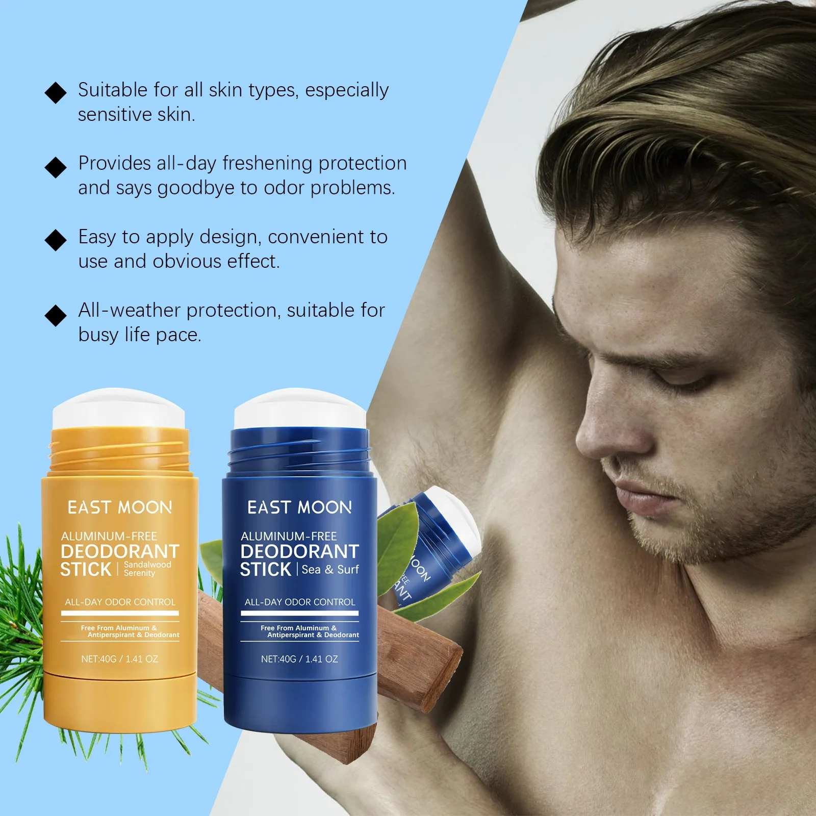 East Moon Men Sandalwood Deodorant Stick Anti Sweating Keep Drying Lasting Fragrance Remove Armpit Odor Underarm Refresh Sticks 40g