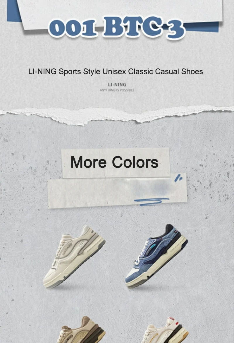 - > Li-ning masculino feminino 001 btc 3 estilo de vida sapatos almofada leve retro moda forro unisex clássico tênis casuais agcv281