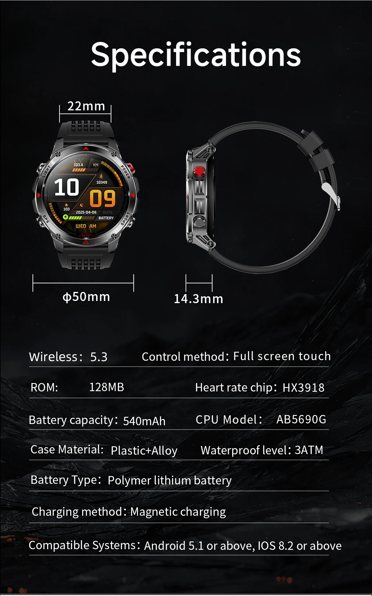 Bateria de polímero de alta capacidade de 540mAh integrada, bateria de longa duração.Chip avançado de baixo consumo de energia, gerenciamento e otimização aprofundados de energia, fazem com que o relógio tenha bateria de longa duração.Deixe você usá-lo sem se preocupar.