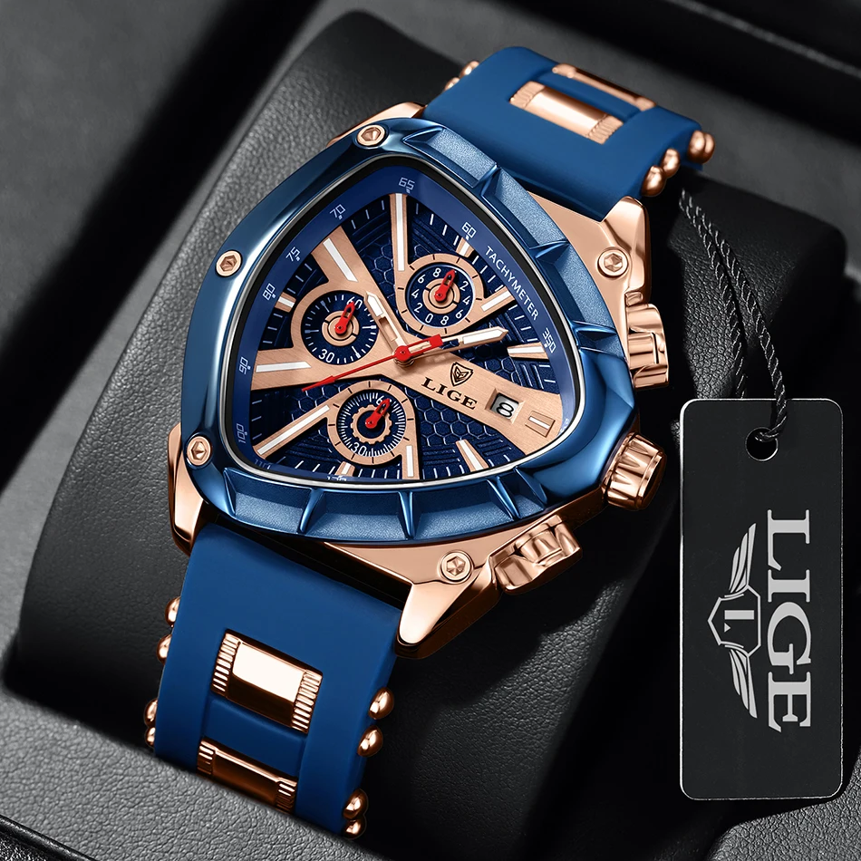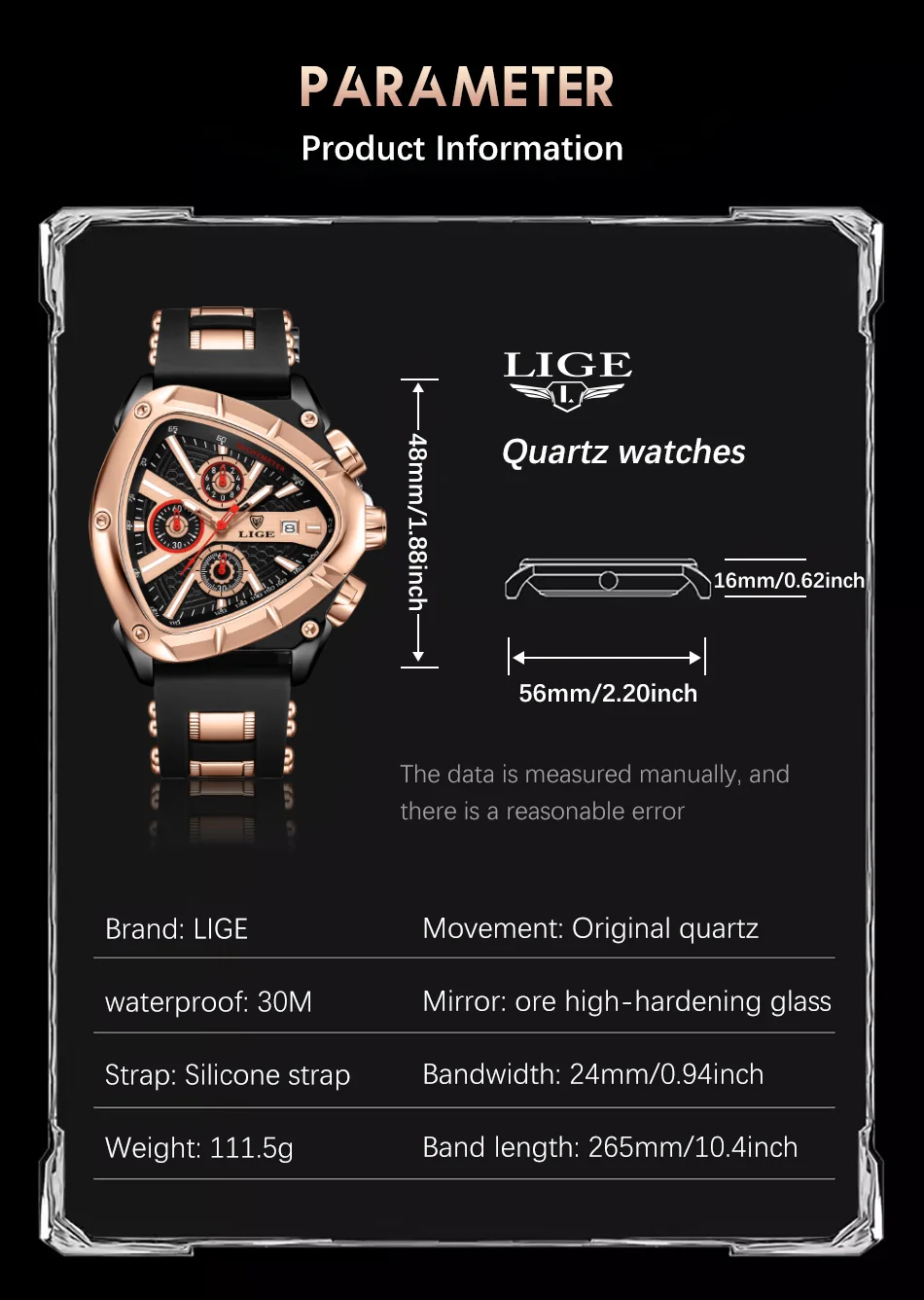 - > LIGE-Relógio impermeável masculino do esporte, quartzo, relógios de pulso, negócios, relógios de pulso Big Dial, Relogio masculino com caixa, original, luxo