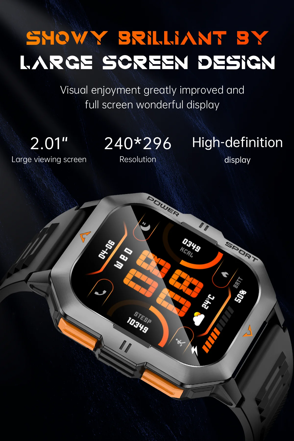 Lige relógio inteligente ao ar livre para homens e mulheres saúde 2.01 '' tela hd 430mah bateria lanterna led à prova dwaterproof água esportes smartwatches