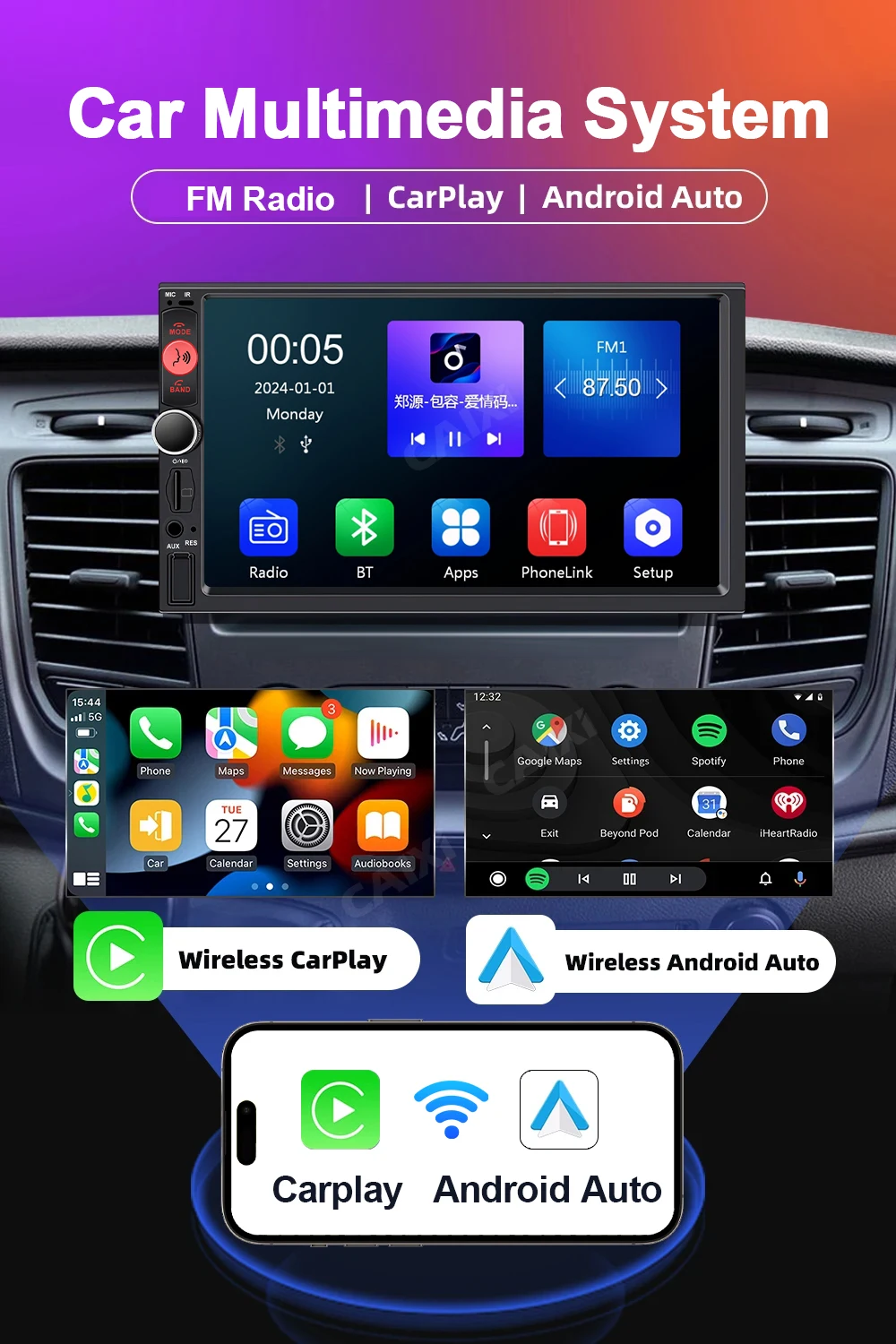 Lihx tela ips 7 polegadas carplay android auto autoradio 2din rádio do carro estéreo multimídia para volkswagen honda toyota hyundai kia