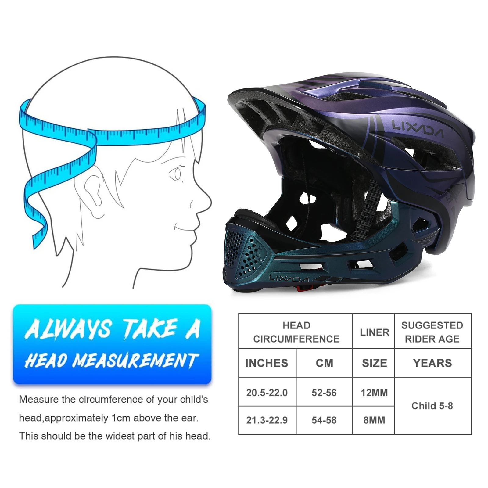 Lixada crianças 2-em-1 destacável capacete facial completo crianças esportes capacete de segurança da bicicleta equipamentos de proteção crianças capacete de ciclismo