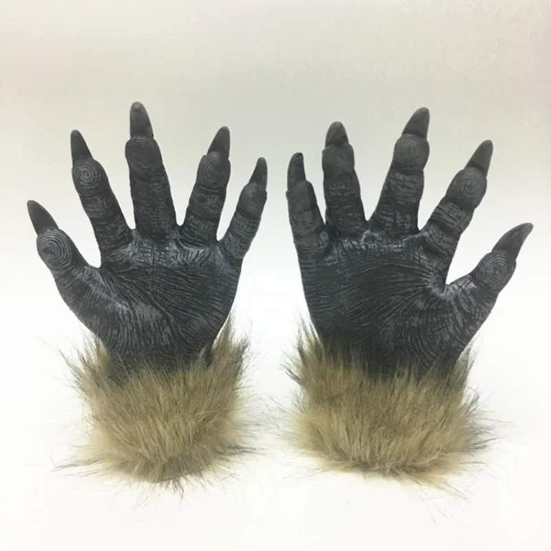 Lobisomem traje festa máscara lobo luvas cosplay halloween látex borracha lobo cabeça máscara de cabelo lobisomem luva festa assustador decoração