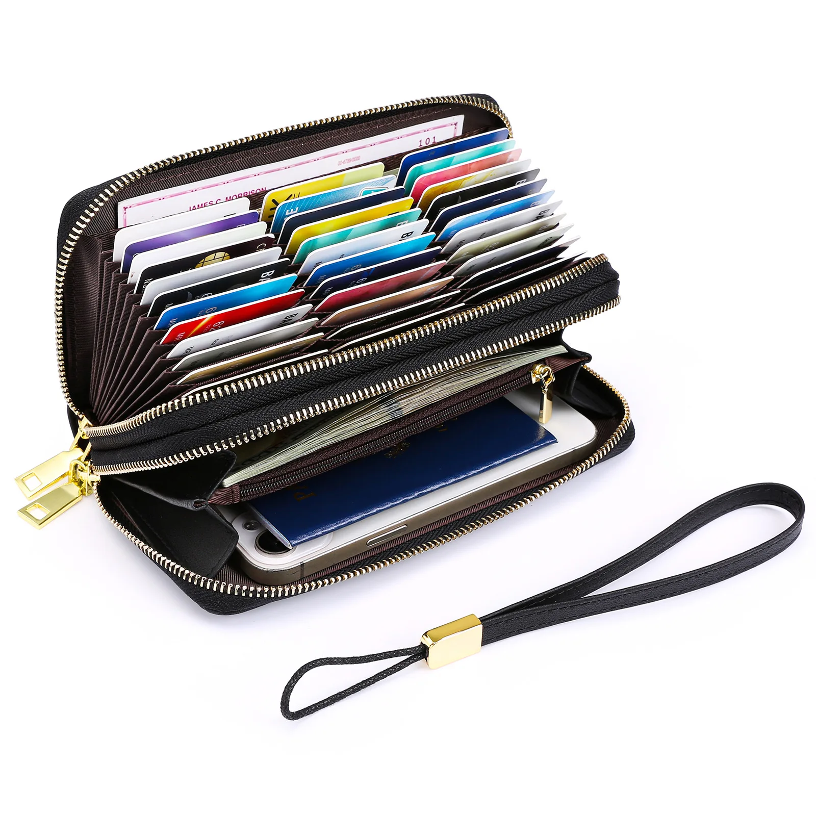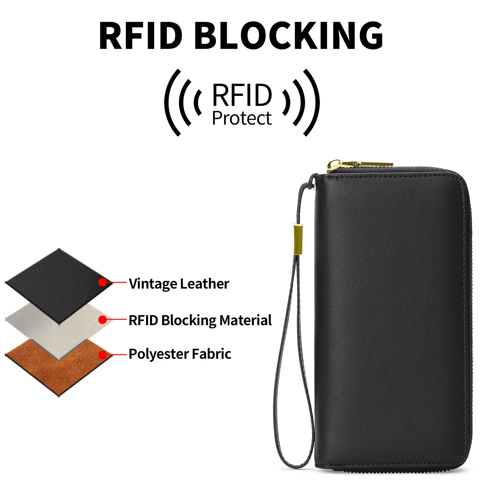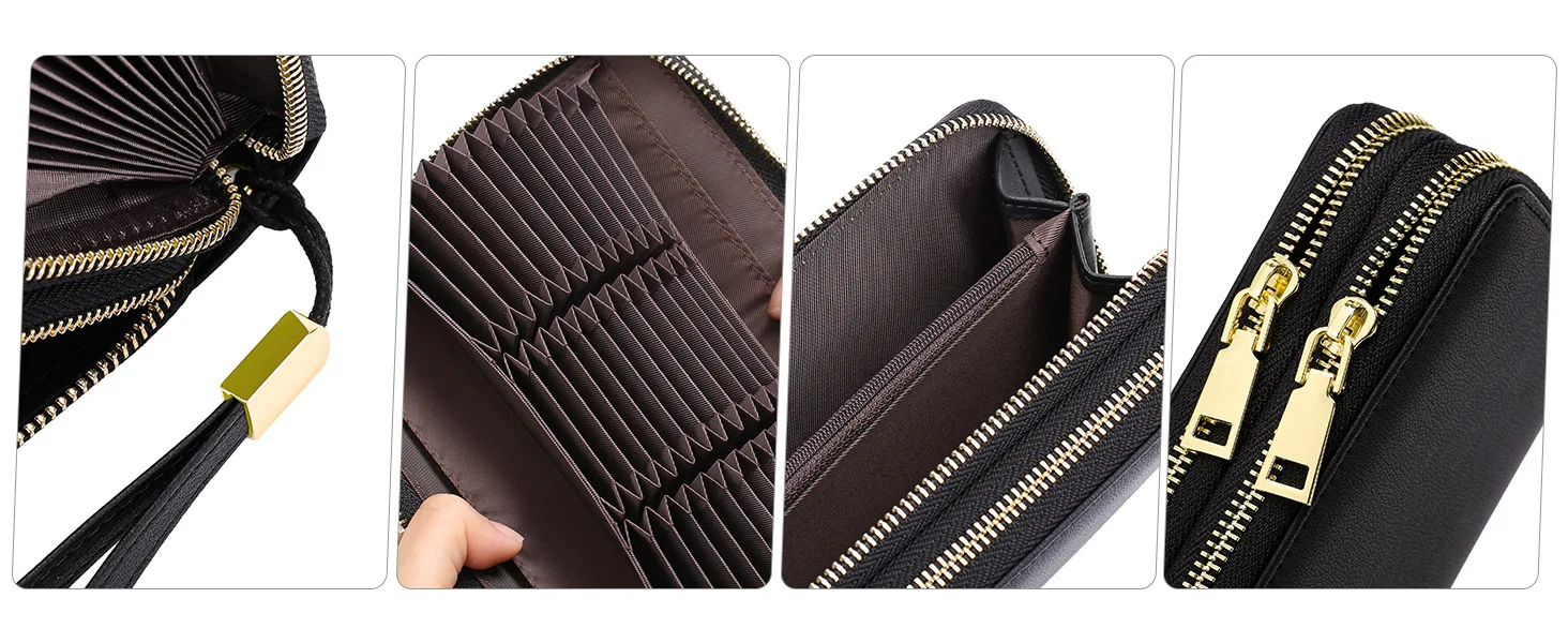 - > Longo feminino rfid anti-roubo saco de cartão de crédito couro do plutônio embreagem titular do passaporte carteira masculina feminina billetera embreagem