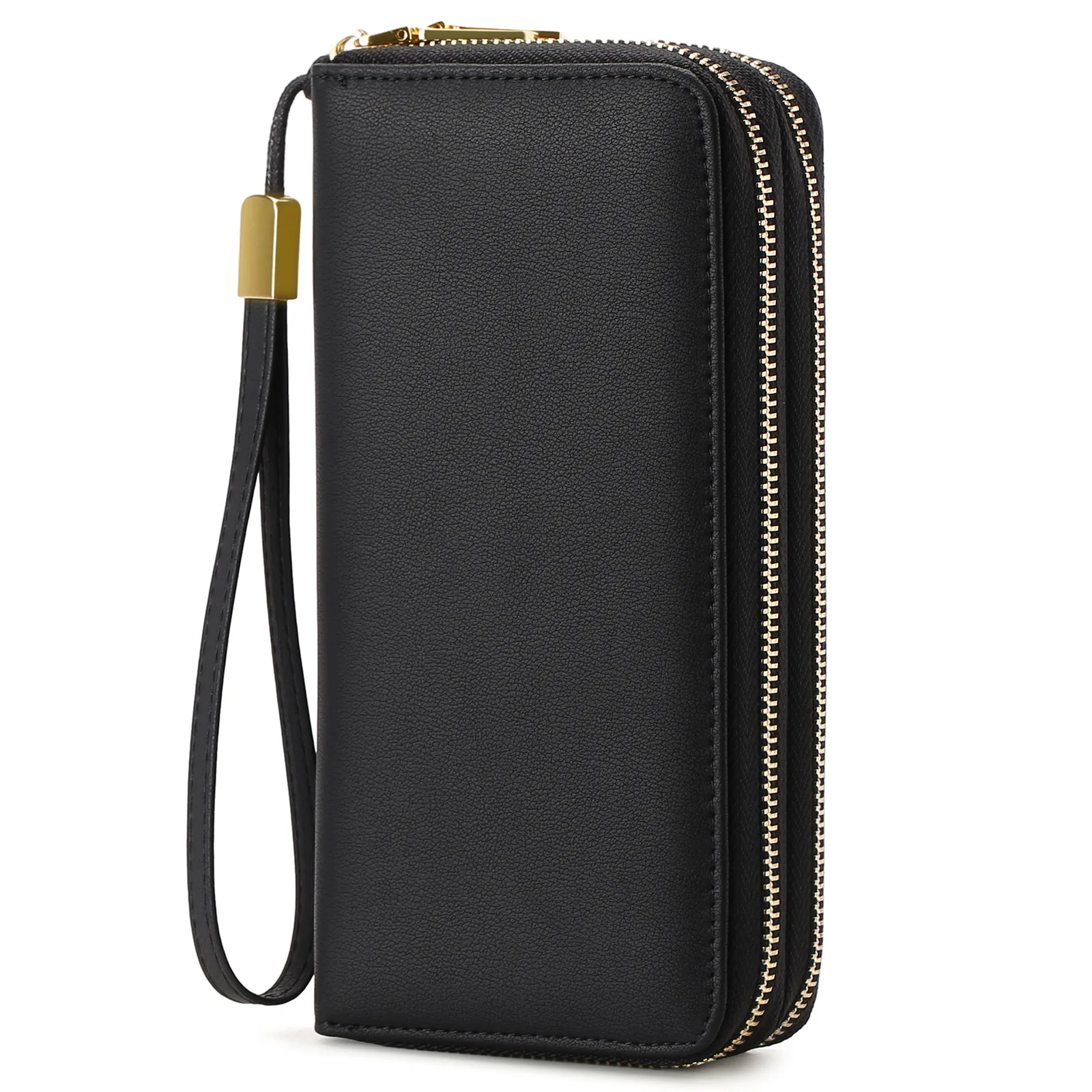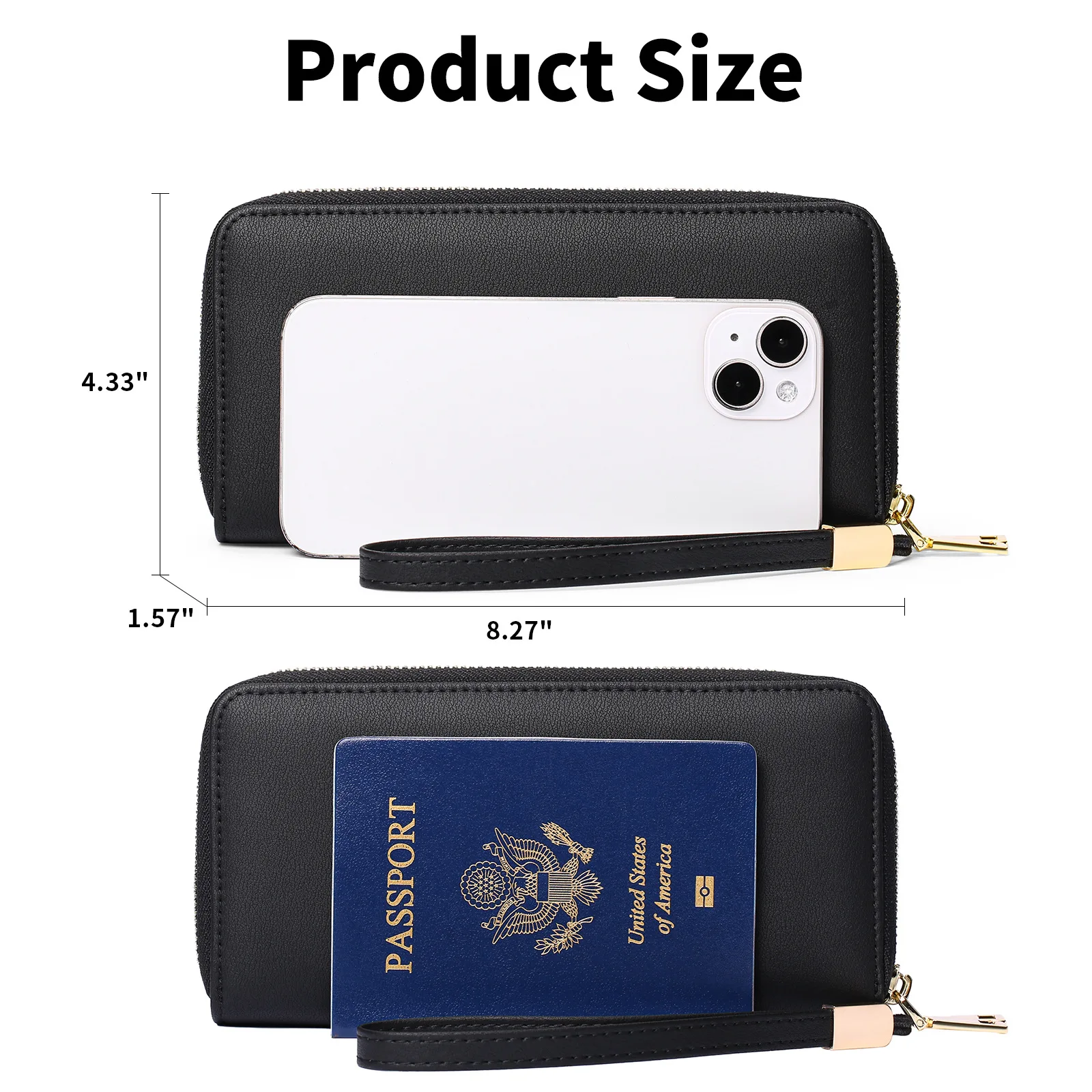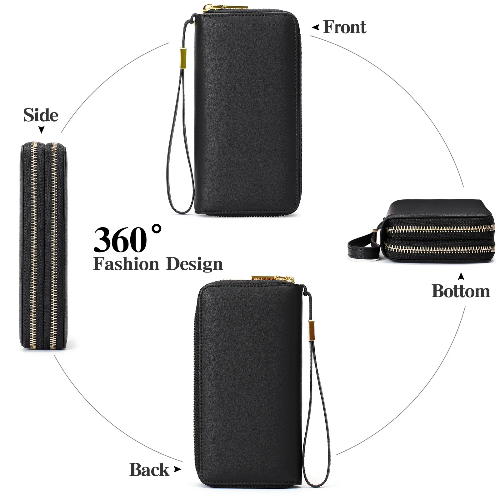 - > Longo feminino rfid anti-roubo saco de cartão de crédito couro do plutônio embreagem titular do passaporte carteira masculina feminina billetera embreagem