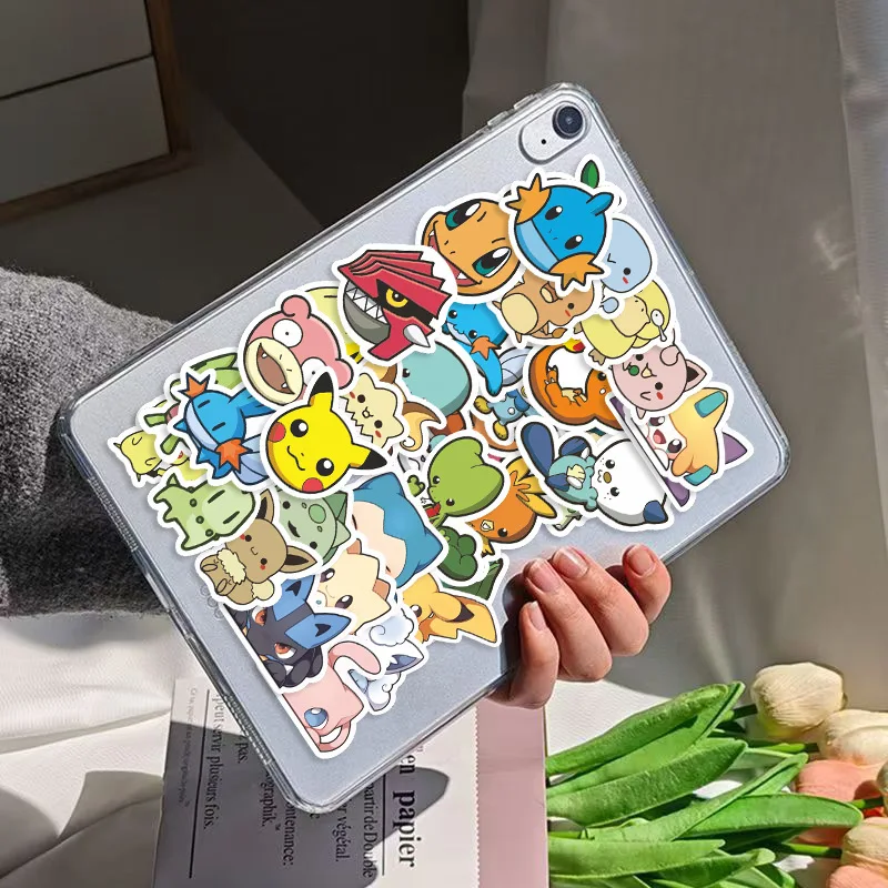 - > Lote De Tazos Pokémon Coletar Adesivos Cartão À Prova D 'Água Pikachu Eevee Decalques Kawaii Reutilizar Conto de Mão