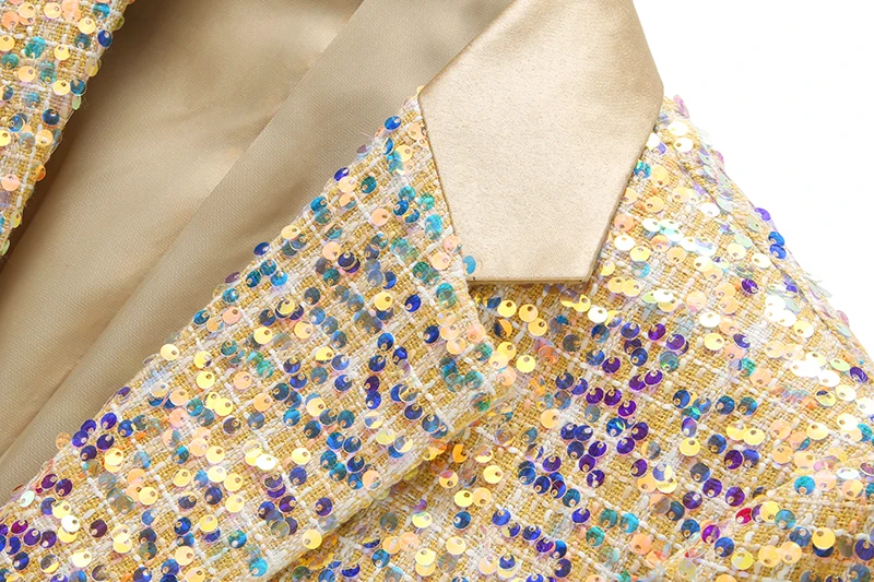 Luxo terno de lantejoulas de ouro dos homens, smoking desempenho de palco, jaqueta e calças, mostrar jaqueta, cantor, bar, KTV, moda, tamanho grande, XXL, novo, 2 pcs