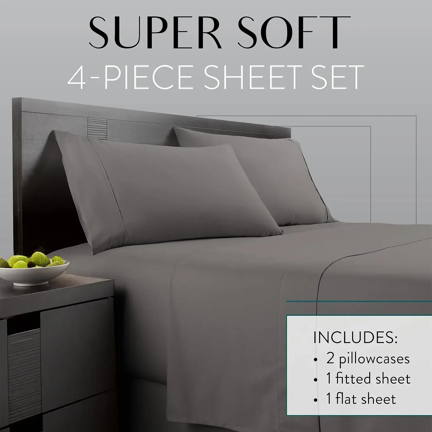 Luxuoso poliéster lençol Set, cama cor sólida Set para quarto ou quarto, 4 pcs