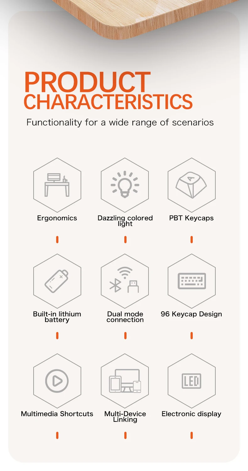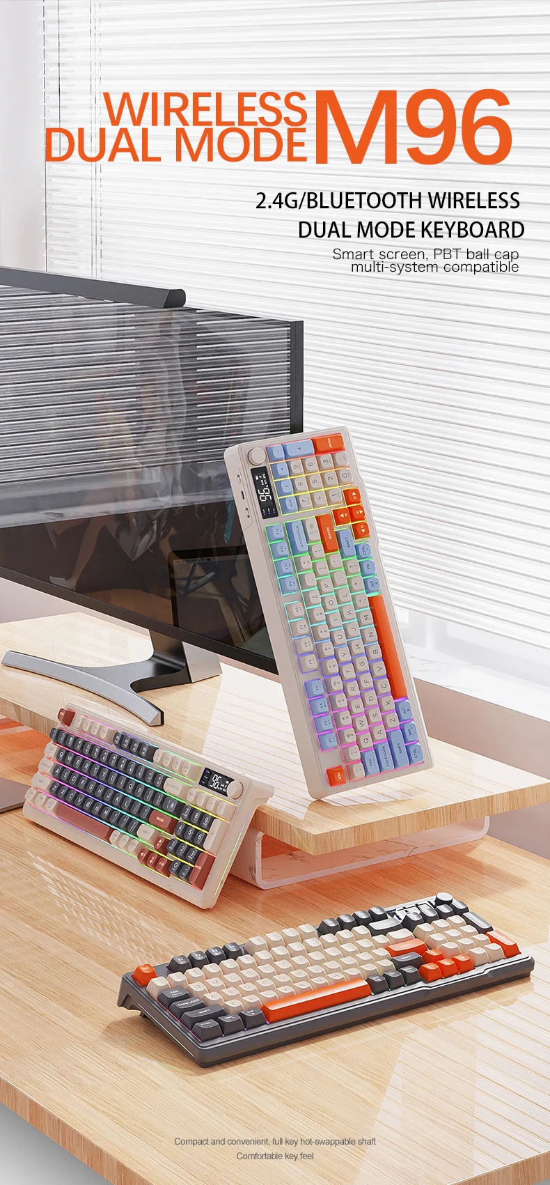 - > M96 teclado bluetooth sem fio freewolf tela teclado para jogos, tela eletrônica, conexão multi-dispositivo, jogos ergonômicos