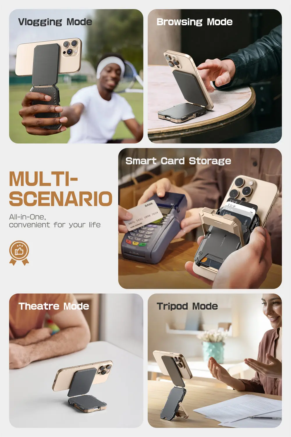 Magnetic Tripod Phone Stand Credit Card Holder for iPhone 16/15/14/13/12